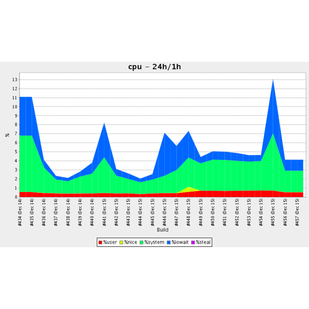Finish! You now get a graph like the one in the beginning of the article… With sar you can also measure memory, swap, network, processes.