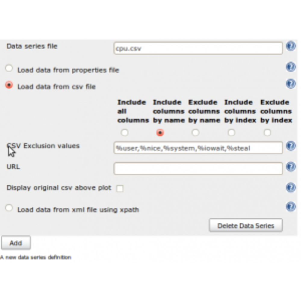 Now we need to give to the plot plugin a csv file of the interested measures. Every build add one Y value for every measure. In the example we have 5 measure, so we need 5 values.