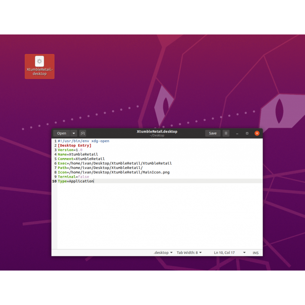 1. Creare un file di testo la cui estensione deve essere .Desktop nel mio caso la chiamerò “XtumbleRetail.Desktop”