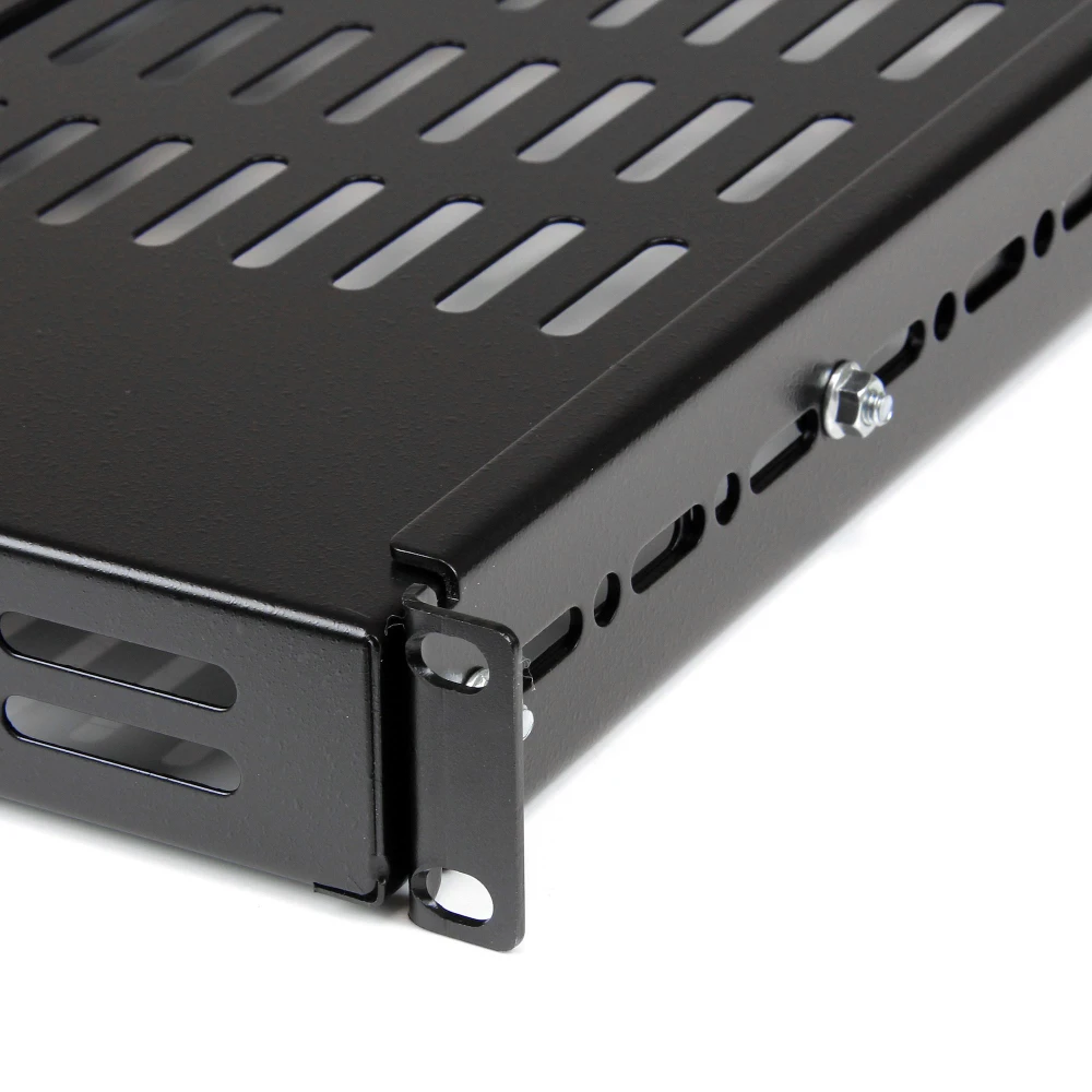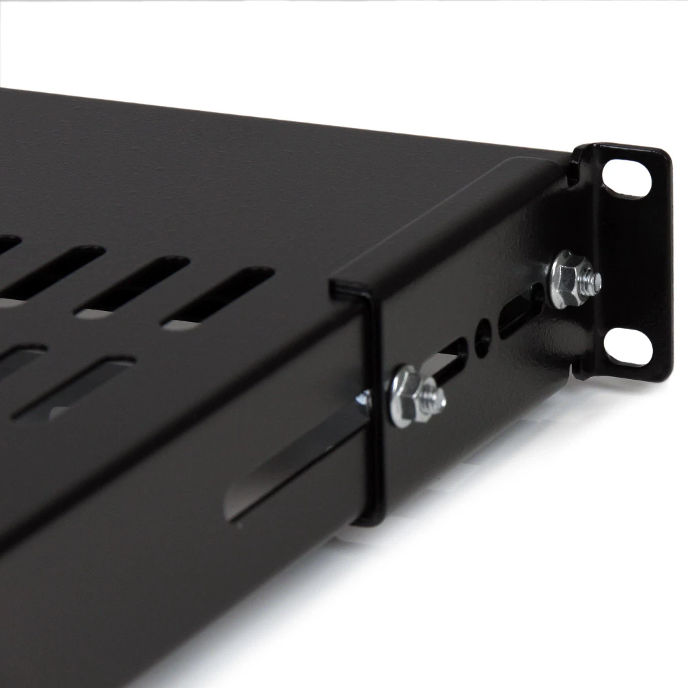 - Add a sturdy adjustable mount depth shelf into almost any server rack or cabinet - Compatible with StarTech.com 4POSTRACKBK - 1U Server Rack Shelf/Adjustable Rack Mount Shelf - 175lbs (80kg) Weight capacity - 27.6in (700mm) deep shelf - Mounting depth adjustable from 19.5-38.3in (495-974mm) - Universal rack shelf fits all standard 19in wide server racks or cabinets - High-capacity shelf for storing networking devices KVM switches tools and equipment in your server room or office