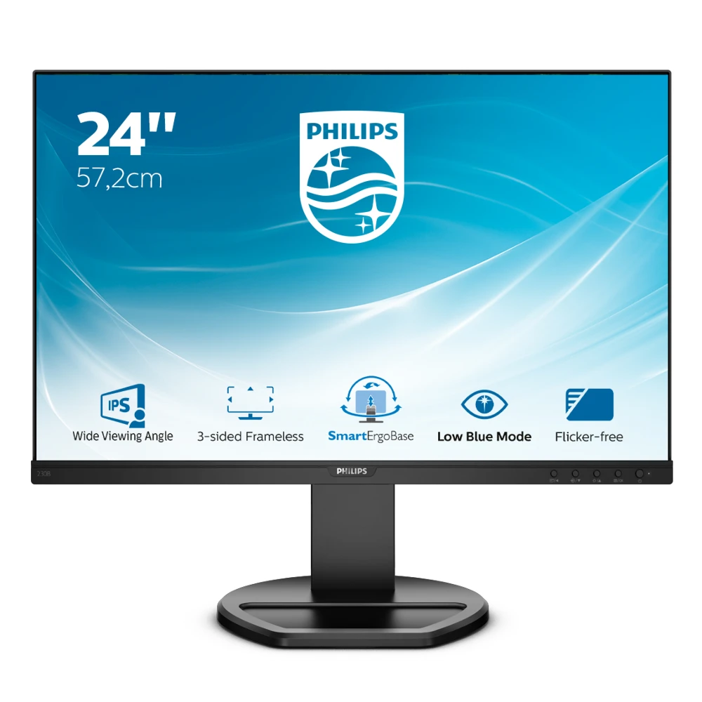 Get your best work done with the Philips 23" monitor. The 16:10 ratio display gives you extra vertical height for increased productivity. Features like height adjustment, Flicker-free and LowBlue mode make work easy on the eyes.