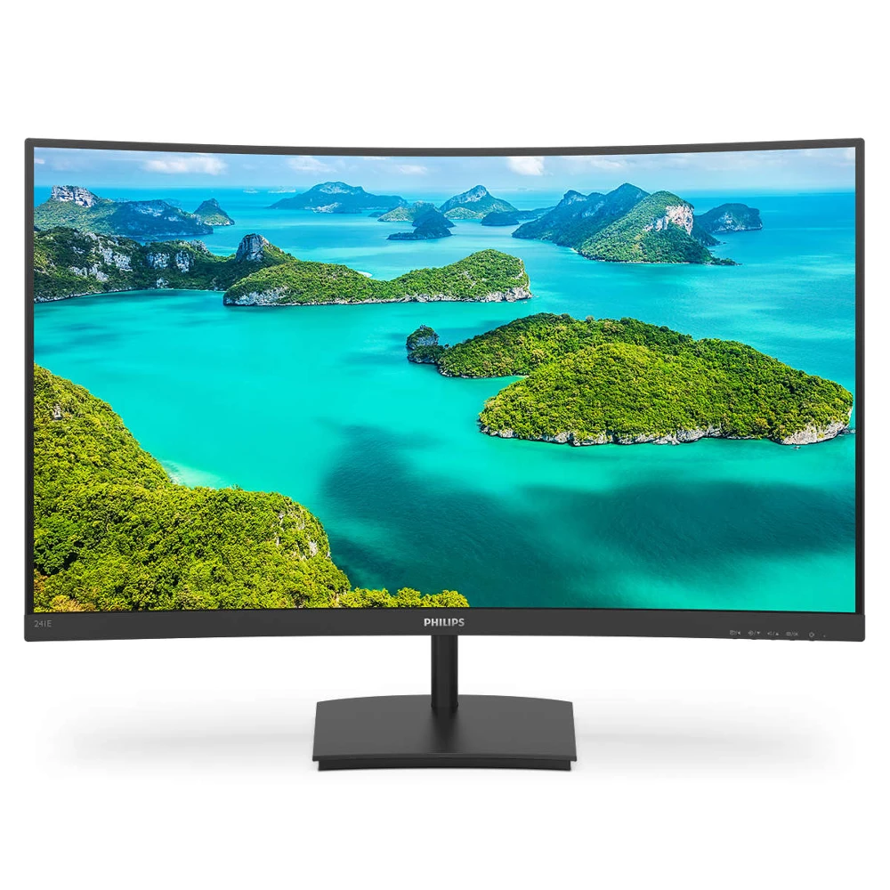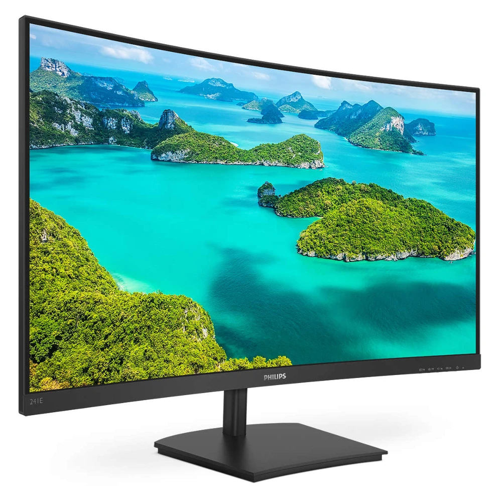 Monitor 241E1SCA Full HD Curved LCD monitor Philips E Line 241E1SCA/00. Display diagonal: 59.9 cm (23.6"), Display resolution: 1920 x 1080 pixels, HD type: Full HD, Display technology: LCD, Display surface: Matt, Response time: 4 ms, Native aspect ratio: 16:9, Viewing angle, horizontal: 178°, Viewing angle, vertical: 178°. Built-in speaker(s). VESA mounting. Product colour: Black The 24" curved E-Line display offers a truly immersive experience in a stylish design. Experience crisp Full HD visuals and smooth action with AMD FreeSync technology.