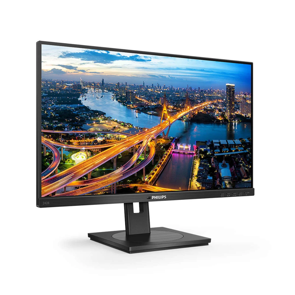 Philips B Line 242B1/00. Display diagonal: 60.5 cm (23.8"), Display resolution: 1920 x 1080 pixels, HD type: Full HD, Display technology: LED, Display surface: Matt, Response time: 4 ms, Native aspect ratio: 16:9, Viewing angle, horizontal: 178°, Viewing angle, vertical: 178°. Built-in speaker(s). Built-in USB hub, USB hub version: 3.2 Gen 2 (3.1 Gen 2). VESA mounting, Height adjustment. Product colour: Black