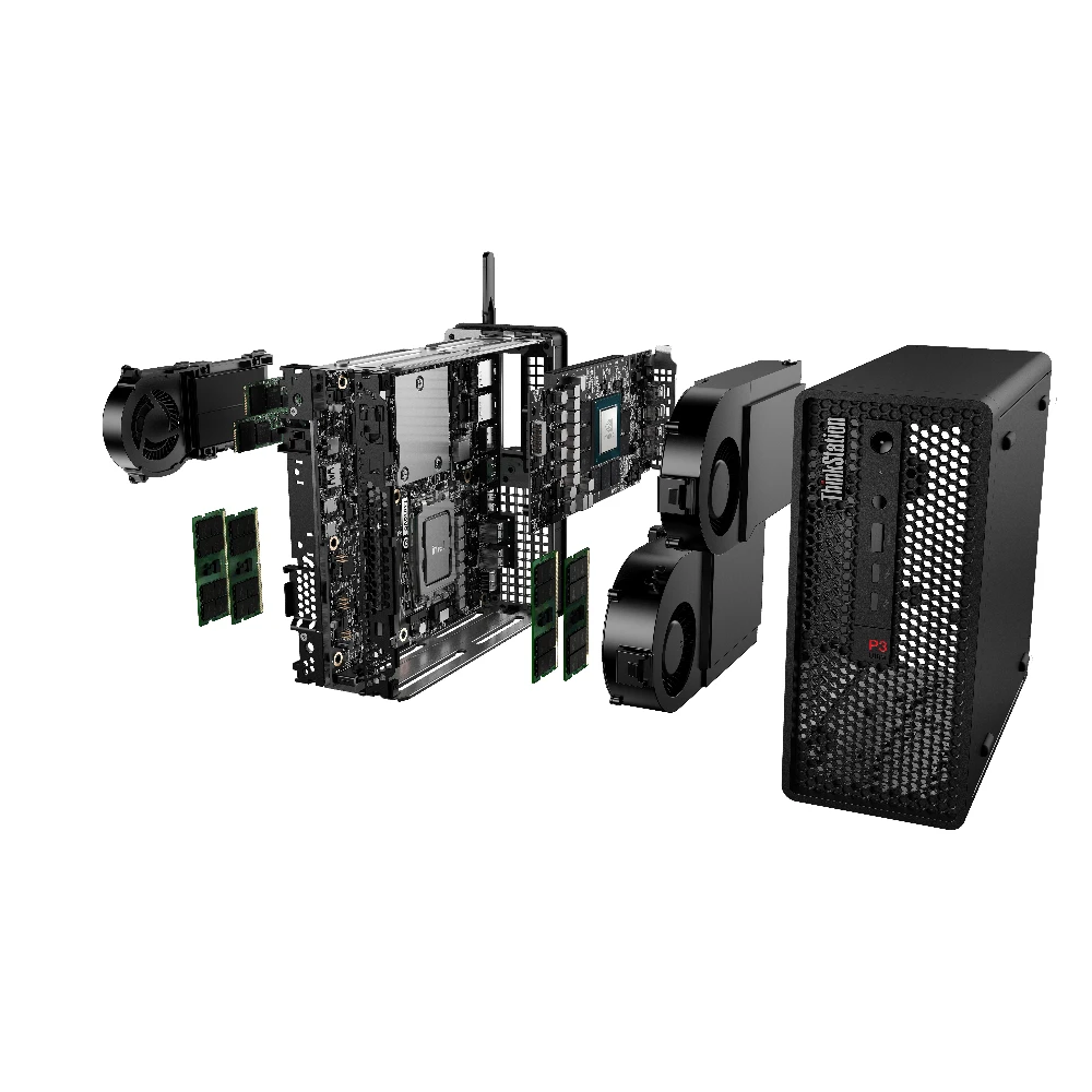 Lenovo ThinkStation P3 Ultra SFF. Processor frequency: 2 GHz, Processor family: Intel® Core™ i9, Processor model: i9-14900. Internal memory: 32 GB, Internal memory type: DDR5-SDRAM, Memory clock speed: 4800 MHz. Total storage capacity: 1 TB, Storage media: SSD. On-board graphics card model: Intel UHD Graphics 770, Discrete graphics card model: NVIDIA RTX A2000. Operating system installed: Windows 11 Pro, Operating system architecture: 64-bit. Power supply: 300 W. Chassis type: Mini Tower. Product type: Workstation