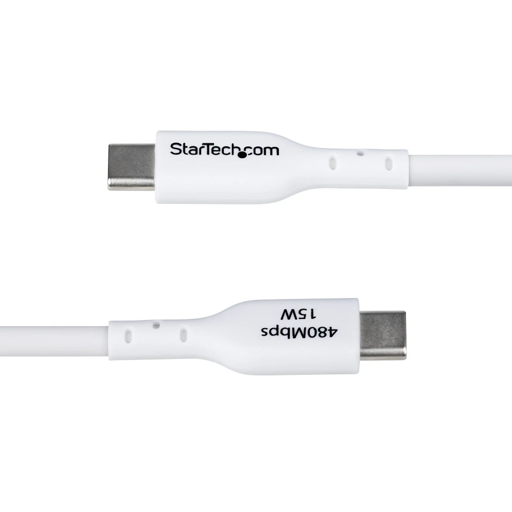 StarTech.com 3m (9.8ft) USB-A to USB-C Charging Cable, Charge & Sync, 3A, USB 2.0, TPE Jacket, White USB Charging Cord StarTech.com 3m (9.8ft) USB-A to USB-C Charging Cable, Charge & Sync, 3A, USB 2.0, TPE Jacket - White USB Charging Cord. Cable length: 3 m. Connector 1: USB A, Connector 2: USB C, USB version: USB 2.0, Maximum data transfer rate: 0.48 Gbit/s, Connector contacts plating: Nickel, Product colour: White - High-quality USB-A to Type-C cable delivers 3A output for fast charging USB-C devices - Connect to a USB-A wall charger/hub/power bank; Supports USB 2.0 for general file transfer/device syncing - Durable nickel-plated connectors w/strain reliefs; TPE outer jacket is RoHS compliant; Aluminum braided shield minimizes EMI - 15W/3A Fast Charge; USB 2.0 (480Mbps); 3-meter (9.8-foot); White; 4mm O.D.; NOTE: USB-C video (DP Alt Mode) is not supported Connect a USB Type-C device to a USB-A wall charger or host computer