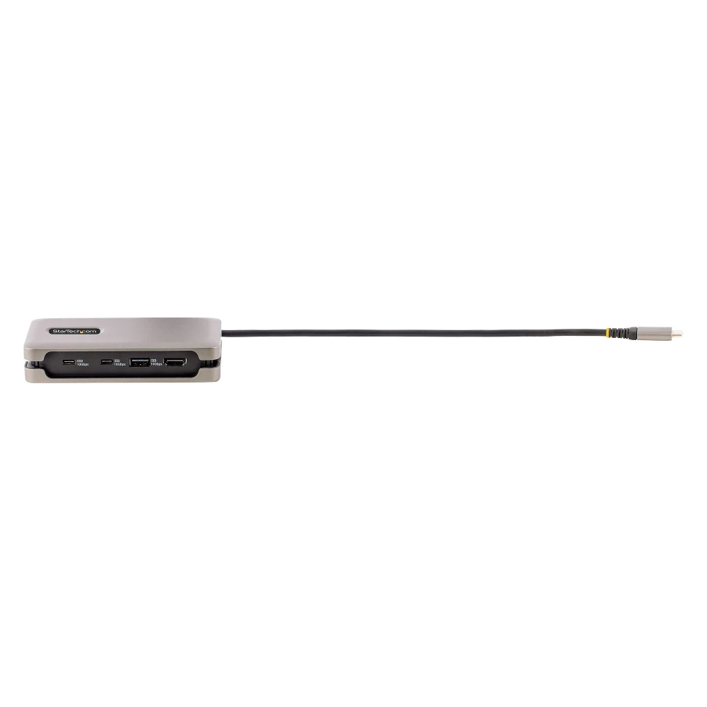 4K 60Hz HDMI | 100W PD Pass-Through | 12" (30cm) Cable | 3-Port USB Hub (10Gbps)This USB-C multiport adapter with DP 1.4 supports 4K 60Hz HDMI? (HDR) and turns a USB-C? laptop or tablet into a workstation, anywhere you go.Enhance ProductivityThe portable docking station provides 4K 60Hz HDMI video output, two USB 3.2 Gen 2 Type-C (10Gbps) ports, one USB 3.2 Gen 2 Type-A (10Gbps) port, and a Gigabit Ethernet port (PXE and WoL support) all through one connection to your laptop's USB-C or Thunderbolt 3/4? port. A USB-C DisplayPort 1.4 Alt-Mode port is required for 4K 60Hz HDMI output.Host ConnectionMaximum ResolutionDP 1.4 Alternate ModeUp to 4K 60HzDP 1.2 Alternate ModeUp to 4K 30HzConnect and Charge Your USB DevicesThe USB hub features two USB-C (10Gbps) ports and one USB-A (10Gbps) port for connecting up to three USB peripherals. The USB PD pass-through port enables charging of the host laptop. USB PD is only available when a USB-C power adapter is connected to the PD pass-through port. Connect a USB-C Power Adapter to use as a standalone USB peripheral charger. The extra-long attached 12inch (30cm) USB-C host cable enables an extended reach for setup flexibility.Portable ConnectivityFor use while travelling, the USB-C adapter can operate bus-powered alone, or with a USB-C power adapter to enable laptop and peripheral charging. The docking station is lightweight and features a built-in wraparound USB-C host cable.Enhance Productivity and Device Management with the StarTech.com Connectivity Tools ApplicationDeveloped to improve performance and security, StarTech.com Connectivity Tools is the only software suite on the market that works with a wide range of IT connectivity accessories. The software suite includes:? Advanced Windows Layout Utility: Setup and save custom windows layouts.? Mac Address Pass-Through Utility: To improve network security.? USB Event Monitoring Utility: To track and log connected USB devices? Wi-Fi Auto Switch Utility: Enabling users to quickly access faster network speeds via wired LAN.For more information and to download the StarTech.com Connectivity Tools application, please visit: www.startech.com/connectivity-toolsThis product is backed for 3-years, including free lifetime 24/5 multi-lingual technical assistance.The StarTech.com Advantage