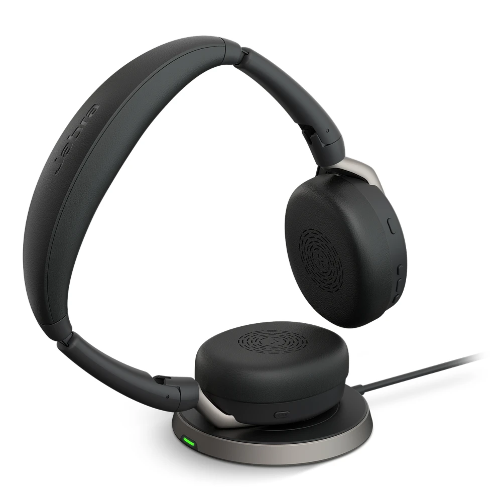 Jabra Evolve2 65 Flex UC Stereo - Cuffie con microfono - on-ear - Bluetooth - senza fili - eliminazione rumore attivata - USB-C - nero - con wireless charging pad - Ottimizzato per UC