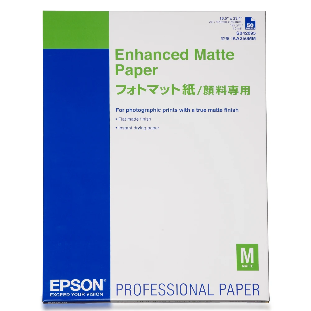 Enhanced Matte Paper, DIN A2, 192g/m², 50 Sheets Epson Enhanced Matte Paper, DIN A2, 192g/m², 50 Sheets. Roll width: 42 cm, Finish type: Matt, Printing media thickness: 260 µm, Print media weight: 192 g/m²