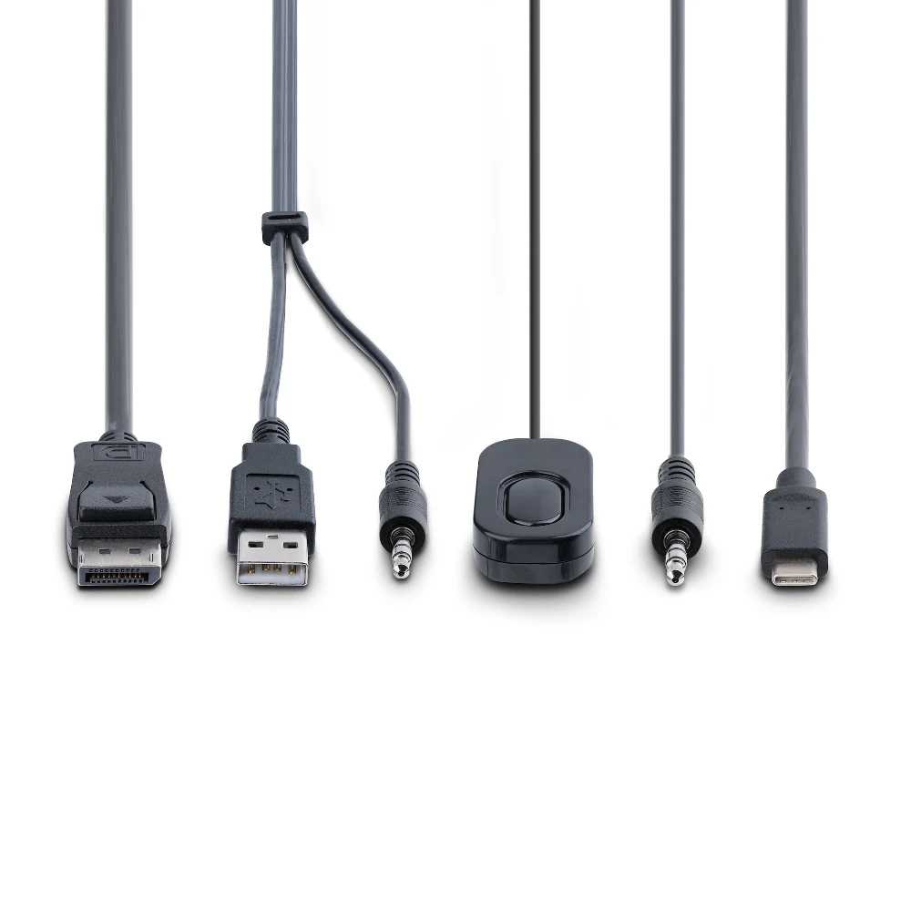 2-Port Hybrid KVM Switch enables switching between a USB-A/DisplayPort desktop and a USB-C DP-Alt Mode laptop to share a mouse/keyboard/4K 60Hz DisplayPort monitor - Built-in 6ft USB-A/DP/Audio host cables for PC1; 4ft USB-C/Audio host cables for PC2 - Cable KVM Switch works on all hardware platforms including Intel/AMD/Apple M1/M2; OS Independent - Remote Push Button (5ft attached cable) or Hotkey Commands with available software; Independent audio switching for uninterrupted audio