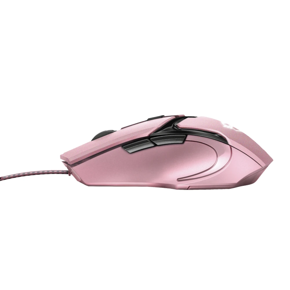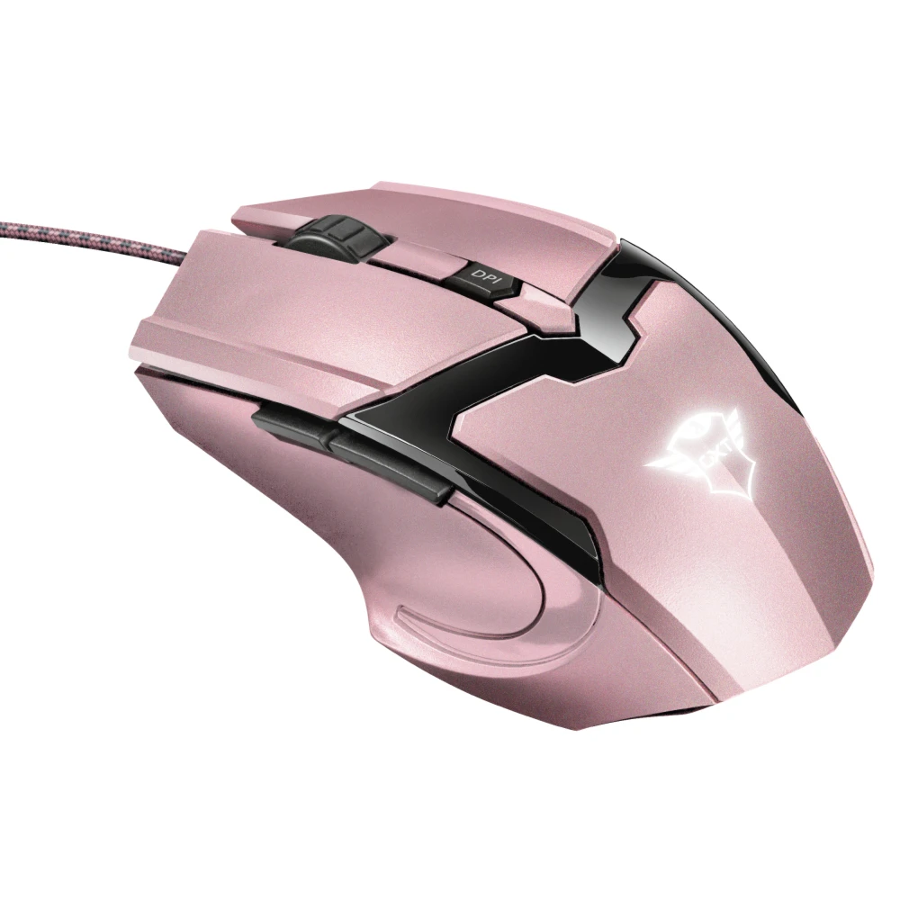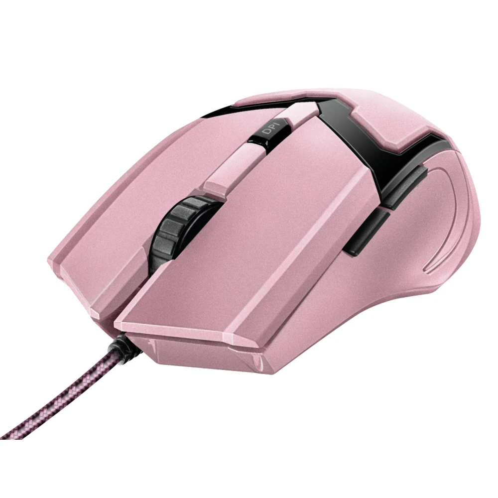 USB 2.0, 600/1200/2400/4800 DPI, 1.8 m Trust GXT 101P. Form factor: Right-hand. Movement detection technology: Optical, Device interface: USB Type-A, Movement resolution: 4800 DPI, Buttons type: Pressed buttons, Buttons quantity: 5, Scroll type: Wheel, Acceleration (max): 16 G. Power source: Cable. Product colour: Black, Pink Accurate 4800 dpi gaming mouse with 6 buttons and fancy illumination