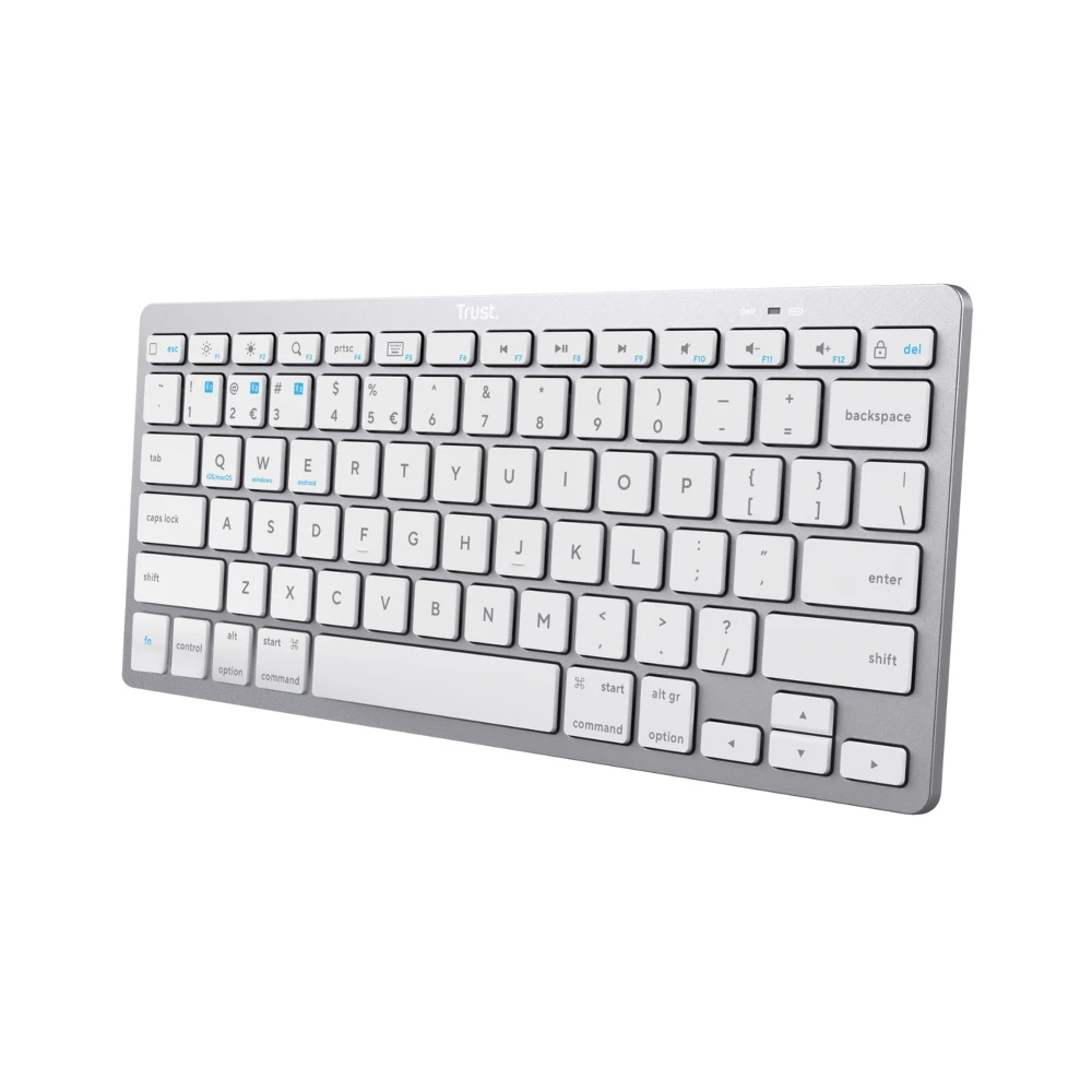 Trust 24652. Connectivity technology: Wireless, Device interface: Bluetooth, Keyboard key switch: Scissor key switch, Keyboard layout: QWERTY, Keyboard number of keys: 85, Recommended usage: Universal. Product colour: Silver