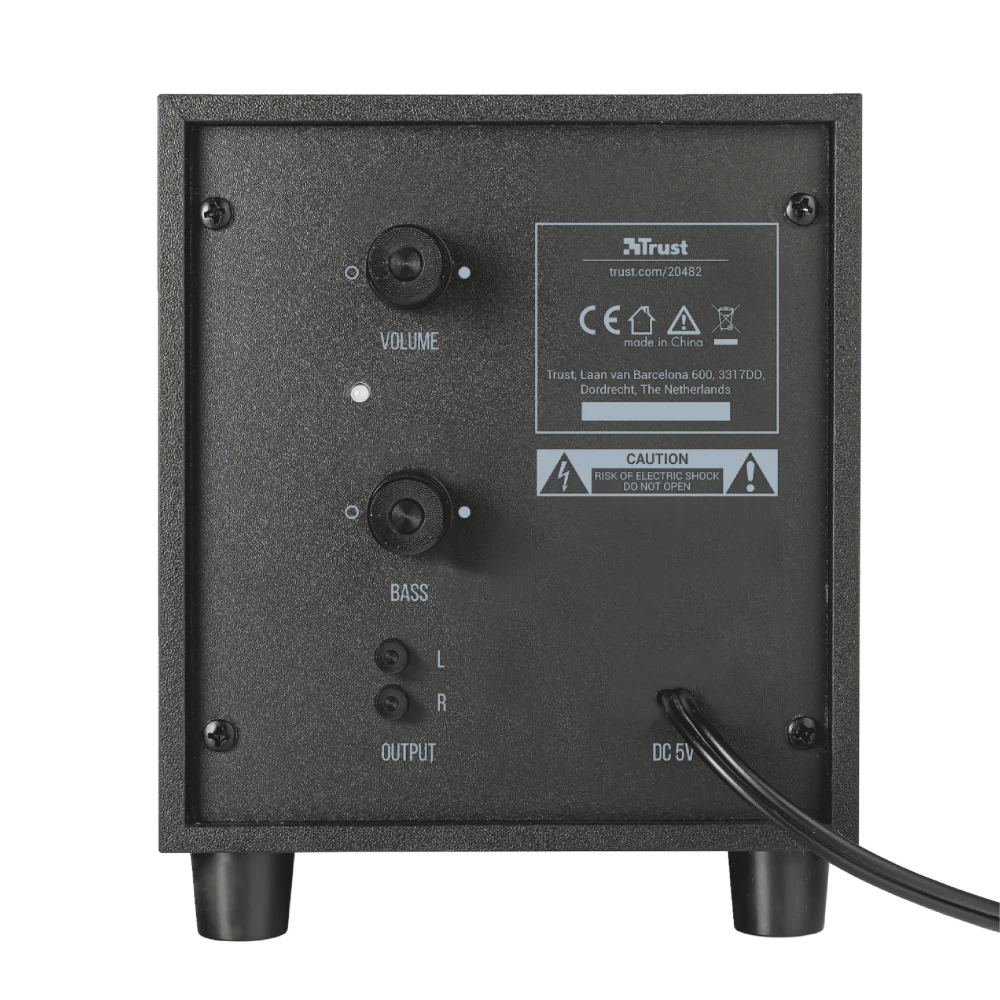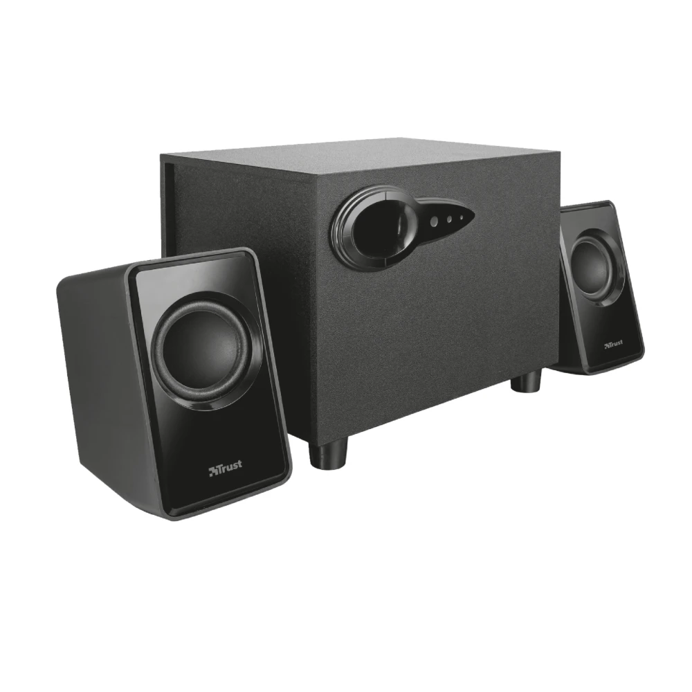 Trust Avora 2.1. Audio output channels: 2.1 channels, RMS rated power: 9 W, Recommended usage: PC. Satellite speaker type: 2-way, Satellite speakers RMS power: 9 W, Satellite speaker peak power: 18 W. Subwoofer type: Active subwoofer. Power source: USB. Weight: 1 kg