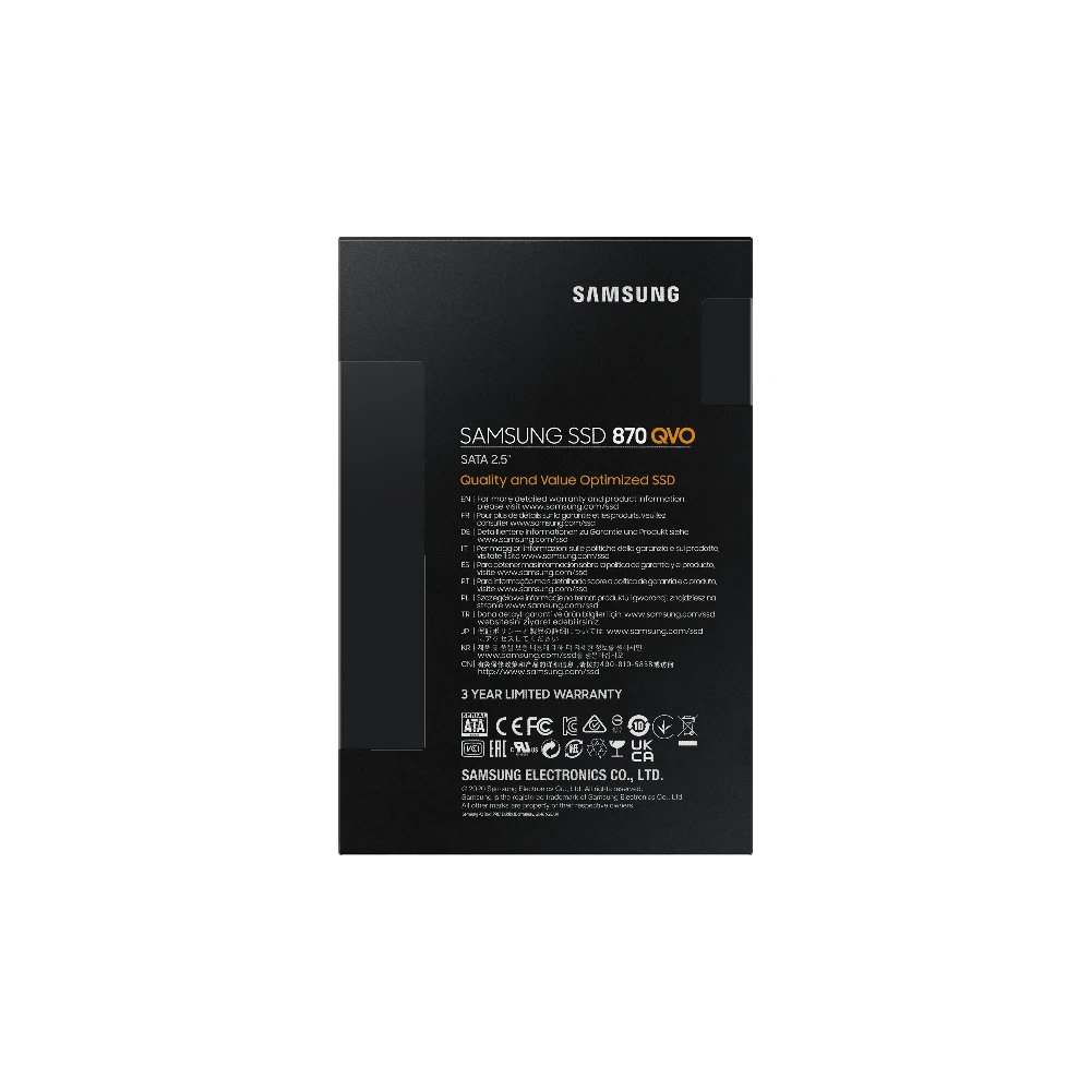 The groundbreaking capacity of the 870 QVO doubles its reliability up to 2,880 TBW compared to the previous model 860 QVO and is backed by a limited warranty of 3 years. This formidable SSD provides further reliability with a refined ECC algorithm that enables a stable performance.