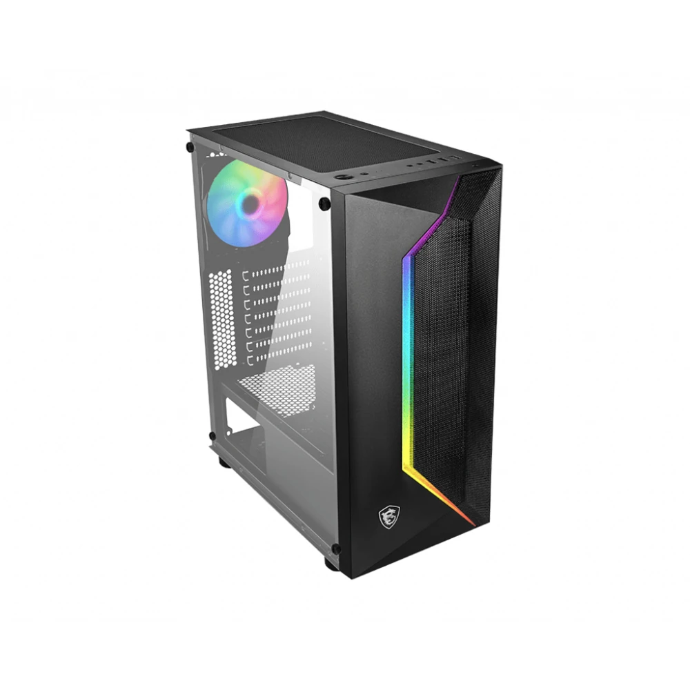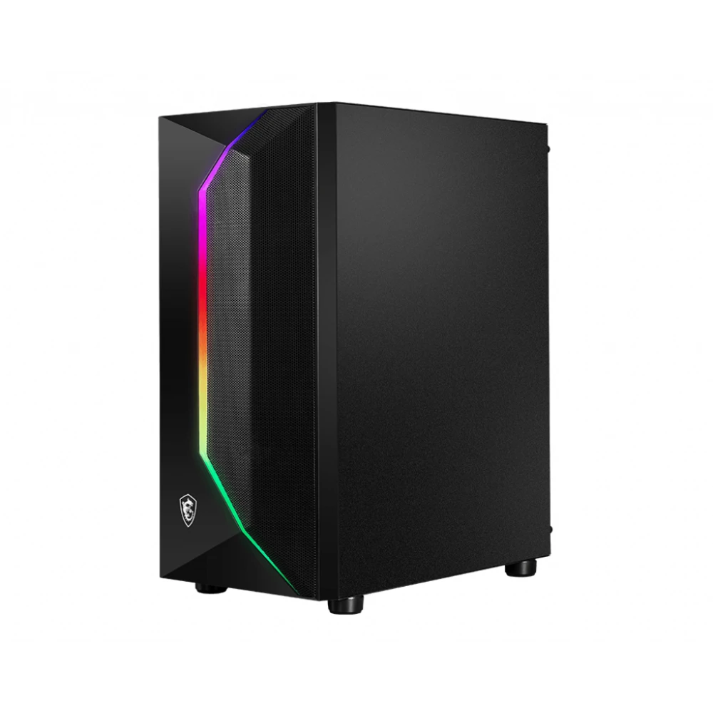 MSI MAG VAMPIRIC 100R 'V100R' Mid Tower Gaming Computer Case 'Black, 1x 120mm ARGB PWM Fan, 1x 120mm PWM Fan, RGB Front Panel, Tempered Glass Panel, ATX, mATX, mini-ITX'. Form factor: Midi Tower, Type: PC, Product colour: Black. Power supply location: Bottom, Supported power supply form factors: ATX. Front fans installed: 1x 120 mm, Front fans diameters supported: 120,140 mm, Rear fans installed: 1x 120 mm. Supported HDD sizes: 2.5,3.5". Width: 205 mm, Depth: 390 mm, Height: 457 mm