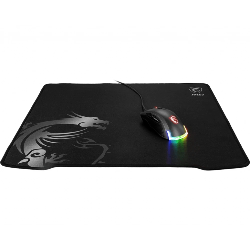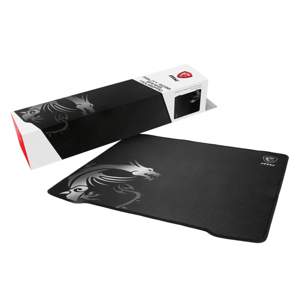 MSI AGILITY GD30 Pro Gaming Mousepad '450mm x 400mm, Pro Gamer Silk Surface, Iconic Dragon Design, Anti-slip and shock-absorbing rubber base, Reinforced stitched edges'. Width: 400 mm, Depth: 450 mm. Product colour: Black, White, Surface coloration: Image, Material: Fabric, Rubber, Stitched edges, Non-slip base, Gaming mouse pad