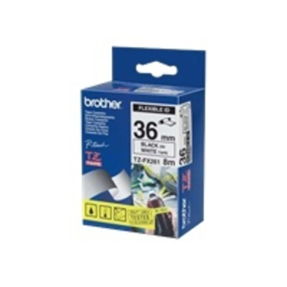 TZeFX261, 36mm (1.4") Black on White Flexible ID Tape 8m (26.2 ft) Brother TZEFX261. Tape type: TZ, Product colour: White, Print technology: Thermal transfer. Tape length: 8 m, Quantity per pack: 1 pc(s), Package type: Box. Tape size: 3.6 cm This tape features our exclusive laminated tape process and a specially formulated adhesive. The adhesive is designed to stick to itself as well as to laminate. Great for wrapping around an item. Perfect for labeling cylindrical surfaces such as cables, PVC piping, etc. Best suited for wire wrapping and flagging. Each tape is 8m (26.2 ft) long.
