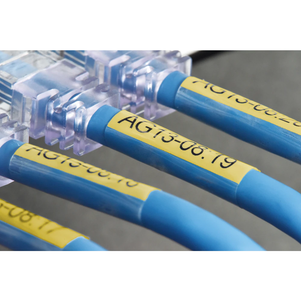 As the text on the label is protected by a laminated overcoat that's automatically applied when printed, this 24mm width label can be wrapped around the wider diameter CAT6A cables and still ensure your text is protected from abrasion and other extremes.