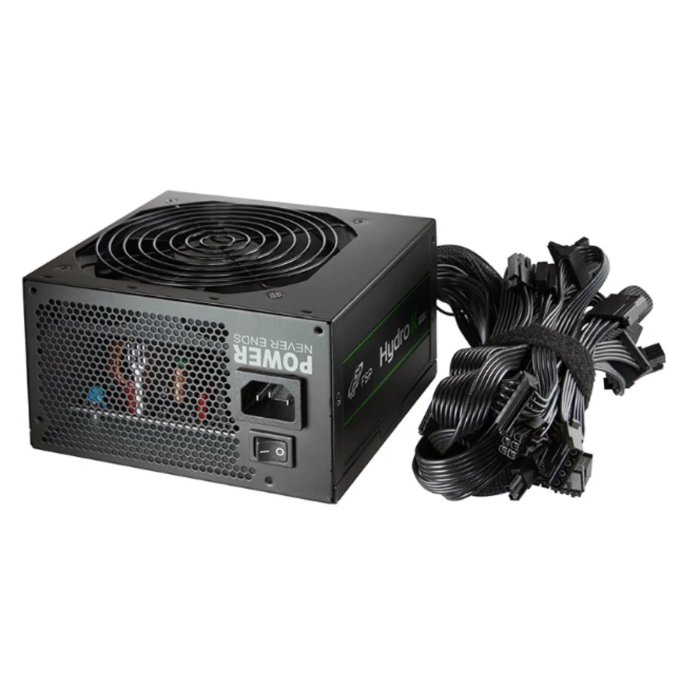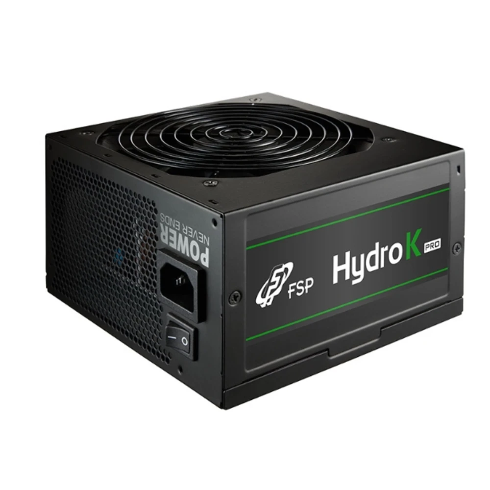 500W, ATX, 80 PLUS Bronze, Ef. 88%, Active PFC, HYB Fan 120mm FSP HP2-500. Total power: 500 W, AC input voltage: 200 - 240 V, AC input frequency: 50 - 60 Hz. Motherboard power connector: 24-pin ATX, Motherboard power cable length: 50 cm, CPU power cable length: 85 cm. Purpose: PC/Server, Power supply unit (PSU) form factor: ATX, 80 PLUS certification: 80 PLUS Bronze. Product colour: Black, Cooling type: Active, Fan diameter: 12 cm. Cables included: CPU, PCIe, Peripheral (Molex), SATA The new Hydro K PRO PSUs comply fully ATX12 v2.52 standard and the latest safety 62368 regulation as well and comes with high-grade ribbon cables, give your PC a polished look. The Hydro K PRO series is designed as a powerful single +12V rail that continually delivers maximum performance for the most demanding graphic cards, while FSP’s custom DC-DC design provides safety and power efficiency. Besides, with an 230V 80 Plus® rating, delivers over 88% high efficiency and low noise levels thanks to its hydraulic bearing fan design, where a large 120mm fan takes care of cooling duties when required, making it excellent for situations that are sensitive to size and noise.