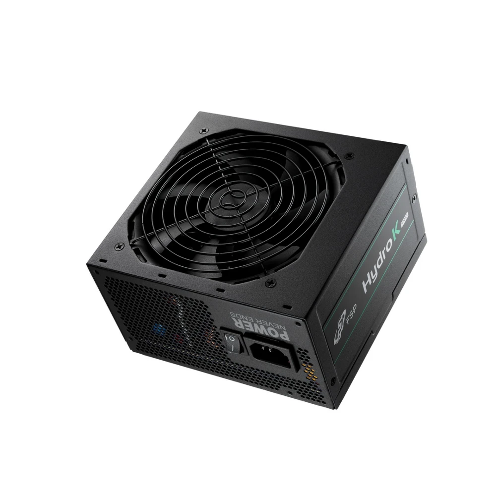 FSP Hydro K PRO 850W. Total power: 850 W, AC input voltage: 200 - 240 V, AC input frequency: 50/60 Hz. Motherboard power connector: 24-pin ATX, Cabling type: Non-Modular. Purpose: PC, Power supply unit (PSU) form factor: ATX, 80 PLUS certification: 80 PLUS Bronze. Product colour: Black, Cooling type: Active, Fan diameter: 12 cm. Cables included: CPU, PCIe, Peripheral (Molex), SATA