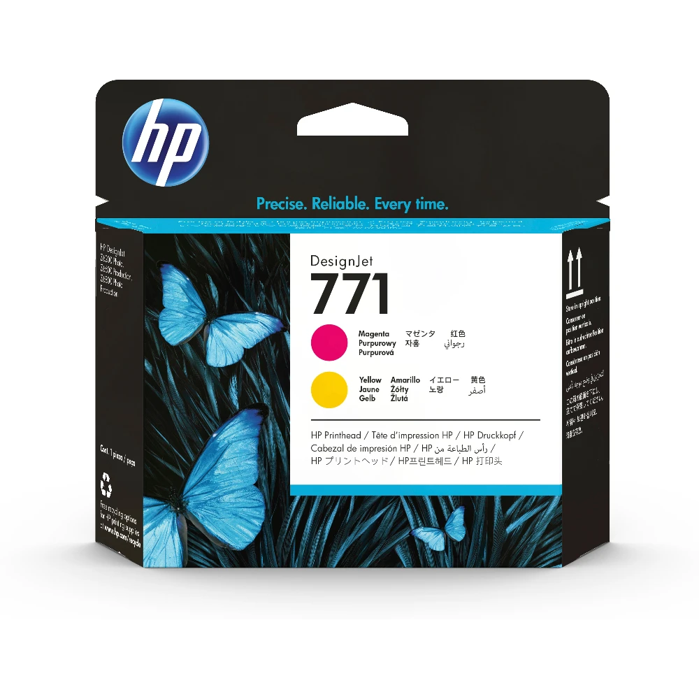 HP 771 Magenta/Yellow DesignJet Printhead delivers the high quality that's expected and meets fast turnaround times. HP DesignJet printheads help you respond quickly by providing quality, speed and easy, hassle-free printing.