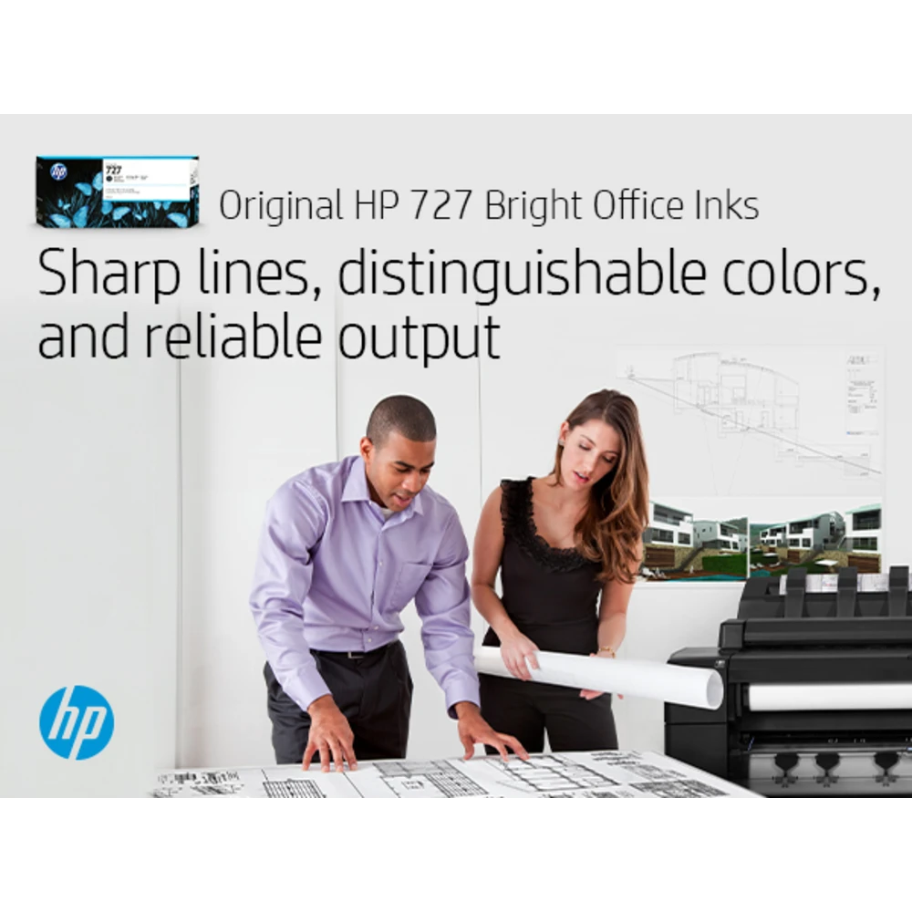 HP 727 Designjet Ink Cartridges are designed together with your HP Designjet printer as an optimized printing system. Original HP inks can help reduce downtime and improve productivity. Crisp, fast-drying, smudge-resistant prints help you keep pace.