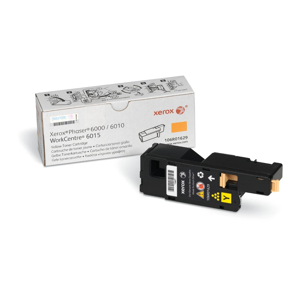 Xerox Genuine Phaser 6000 / 6010 / WorkCentre 6015 Yellow Toner Cartridge - 106R01629 Xerox Genuine Phaser 6000 / 6010 / WorkCentre 6015 Yellow Toner Cartridge - 106R01629 is specially formulated and tested to provide the best image quality and most reliable printing you can count on page after page. Xerox Genuine Supplies and Xerox equipment are made for each other. Accept no imitations. Compatible toners may risk breakdown of Xerox printers and result in poor print quality and weak colours. With over 75 years' experience, Genuine Xerox Supplies are something you can rely on.