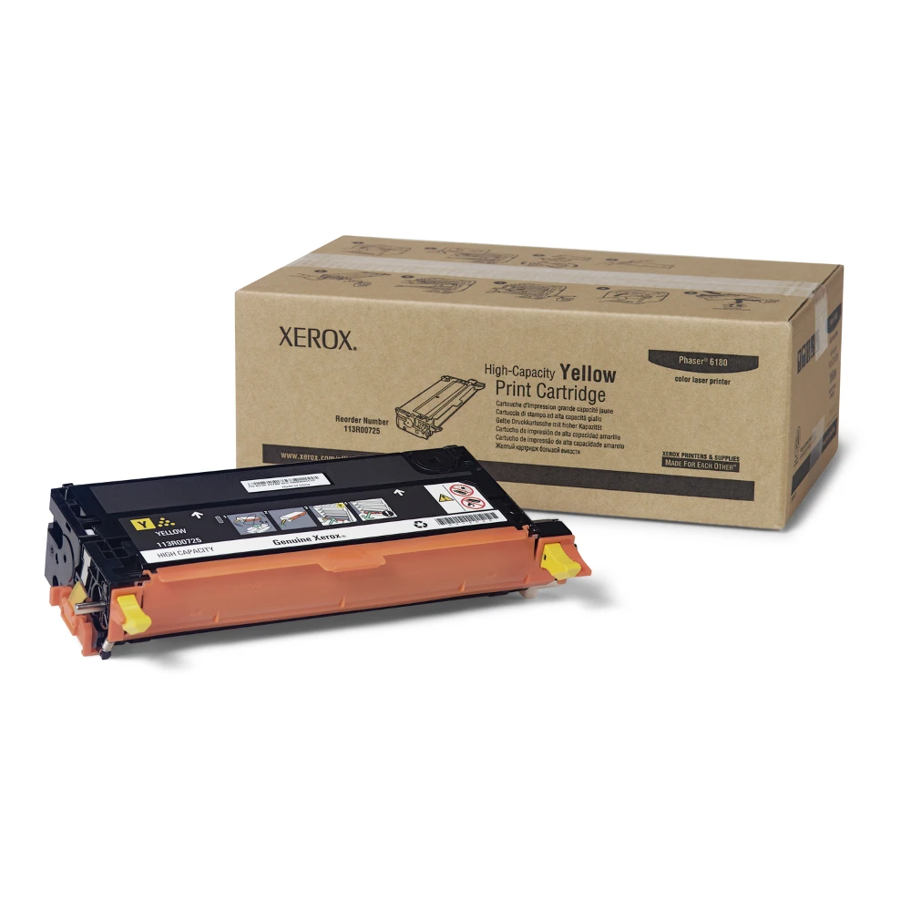 Xerox Genuine Phaser 6180 / 6180MFP Yellow Toner Cartridge - 113R00725 is specially formulated and tested to provide the best image quality and most reliable printing you can count on page after page. Xerox Genuine Supplies and Xerox equipment are made for each other. Accept no imitations. Compatible toners may risk breakdown of Xerox printers and result in poor print quality and weak colours. With over 75 years' experience, Genuine Xerox Supplies are something you can rely on.