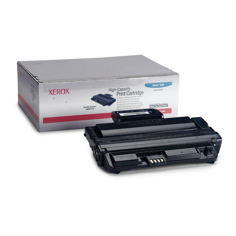 Xerox Genuine Phaser® 3250 Toner Cartridge - 106R01374 Xerox Genuine Phaser® 3250 Toner Cartridge - 106R01374. Black toner page yield: 5000 pages, Printing colours: Black Xerox Genuine Phaser® 3250 Toner Cartridge - 106R01374 is specially formulated and tested to provide the best image quality and most reliable printing you can count on page after page. Xerox Genuine Supplies and Xerox equipment are made for each other. Accept no imitations. Compatible toners may risk breakdown of Xerox printers and result in poor print quality and weak colours. With over 75 years' experience, Genuine Xerox Supplies are something you can rely on.