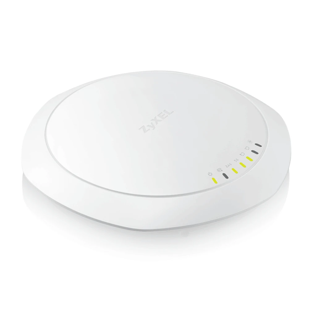 NWA1123 AC Pro Standalone / NebulaFlex 3x3 SU-MIMO Dual optimised Wireless Access Point (excludes passive PoE injector) Zyxel NWA1123 AC Pro NebulaFlex. Maximum data transfer rate: 1300 Mbit/s, Ethernet LAN data rates: 10,100,1000 Mbit/s, Networking standards: IEEE 802.11a, IEEE 802.11ac, IEEE 802.11b, IEEE 802.11g, IEEE 802.11n, IEEE 802.1x, IEEE 802.3,.... Security algorithms: 802.1x RADIUS, EAP-AKA, EAP-FAST, EAP-PEAP, EAP-SIM, EAP-TLS, EAP-TTLS, SNMP, SSH, WEP, WPA,..., Service Set Identifier (SSID) features: SSID broadcast on/off. AC input voltage: 100 - 240 V, AC input frequency: 50 Hz. Placement: Ceiling, Wall, Product colour: White, Certification: FCC part 15C, FCC part 15E, ETSI EN 300 328, EN 301 893, LP0002 FCC part 15B, EN 301 489-1, EN.... Antenna type: Internal, Antenna gain level (max): 5 dBi Best interior Wi-Fi performance in style