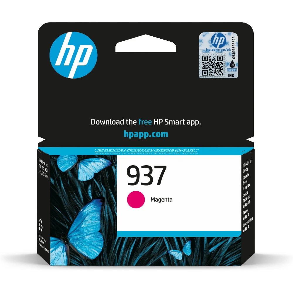 937 Magenta Original Ink Cartridge HP 937 Magenta Original Ink Cartridge. Cartridge capacity: Standard Yield, Supply type: Single pack, Colour ink page yield: 800 pages, Quantity per pack: 1 pc(s) Reliable, quality printing for business Ideal for professional-quality printing with vibrant color and bold blacks.