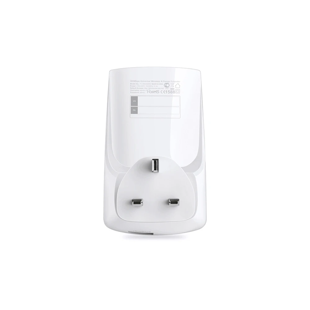 TP-Link 300Mbps Wi-Fi Range Extender. Type: Network repeater, Data transfer rate: 300 Mbit/s, Ethernet LAN data rates: 10,100 Mbit/s. Antenna type: Internal, Transmit power range: 0 - 20 dBmW. Cabling technology: 10/100Base-T(X), Networking standards: IEEE 802.11b, IEEE 802.11g, IEEE 802.11n, Wi-Fi standards: 802.11b, 802.11g, Wi-Fi 4 (802.11n). Product colour: White, Certification: CE, FCC. AC input voltage: 100 - 240 V, AC input frequency: 50 - 60 Hz, Power consumption (typical): 3.3 W