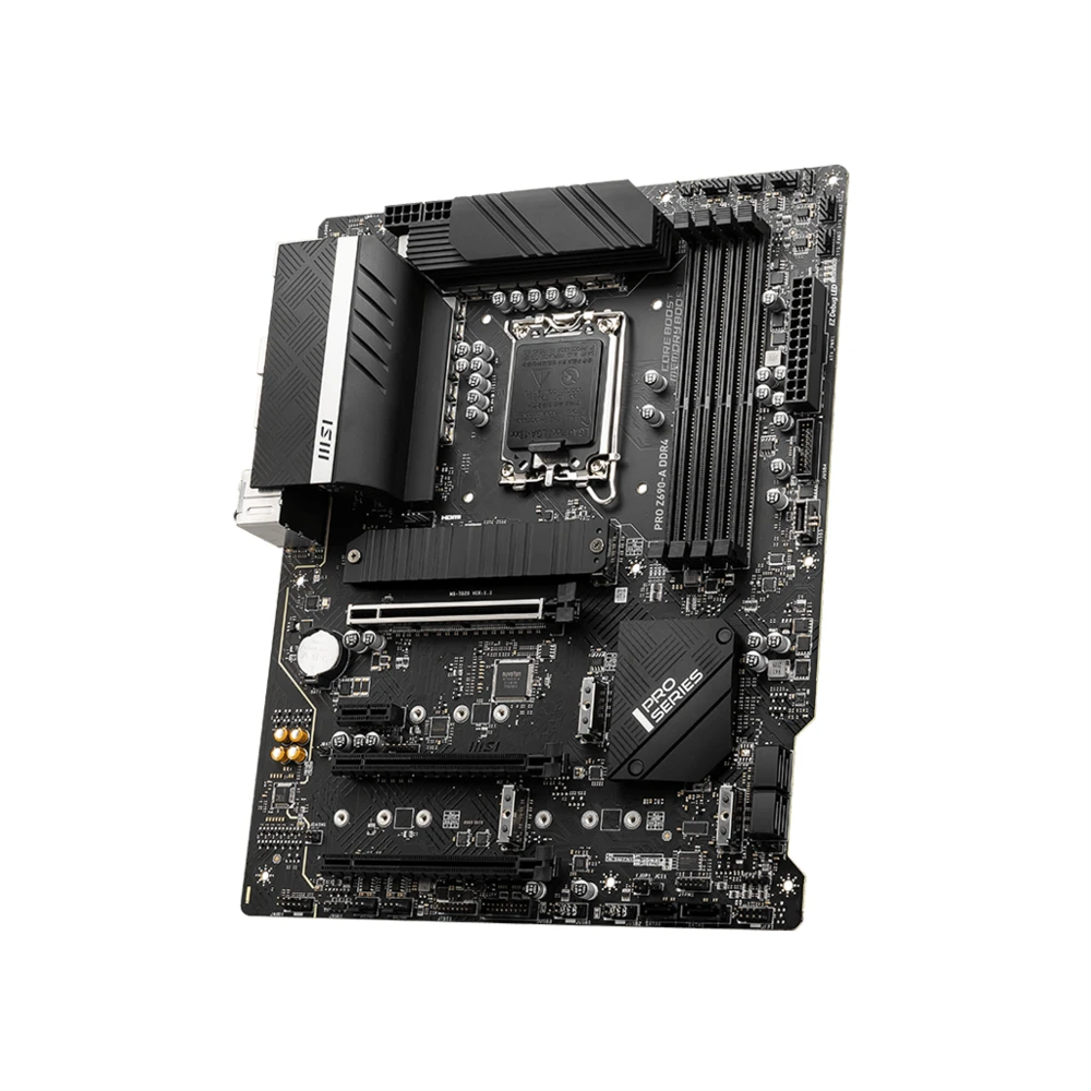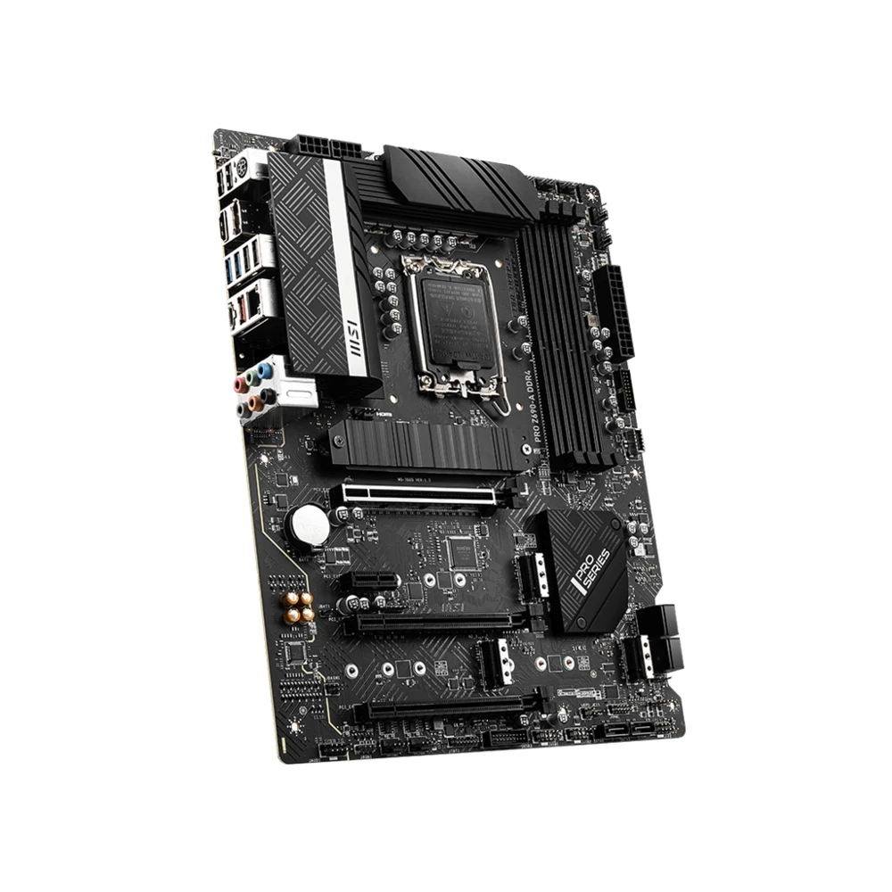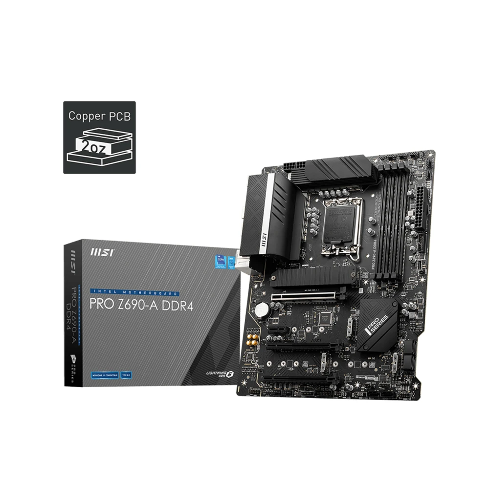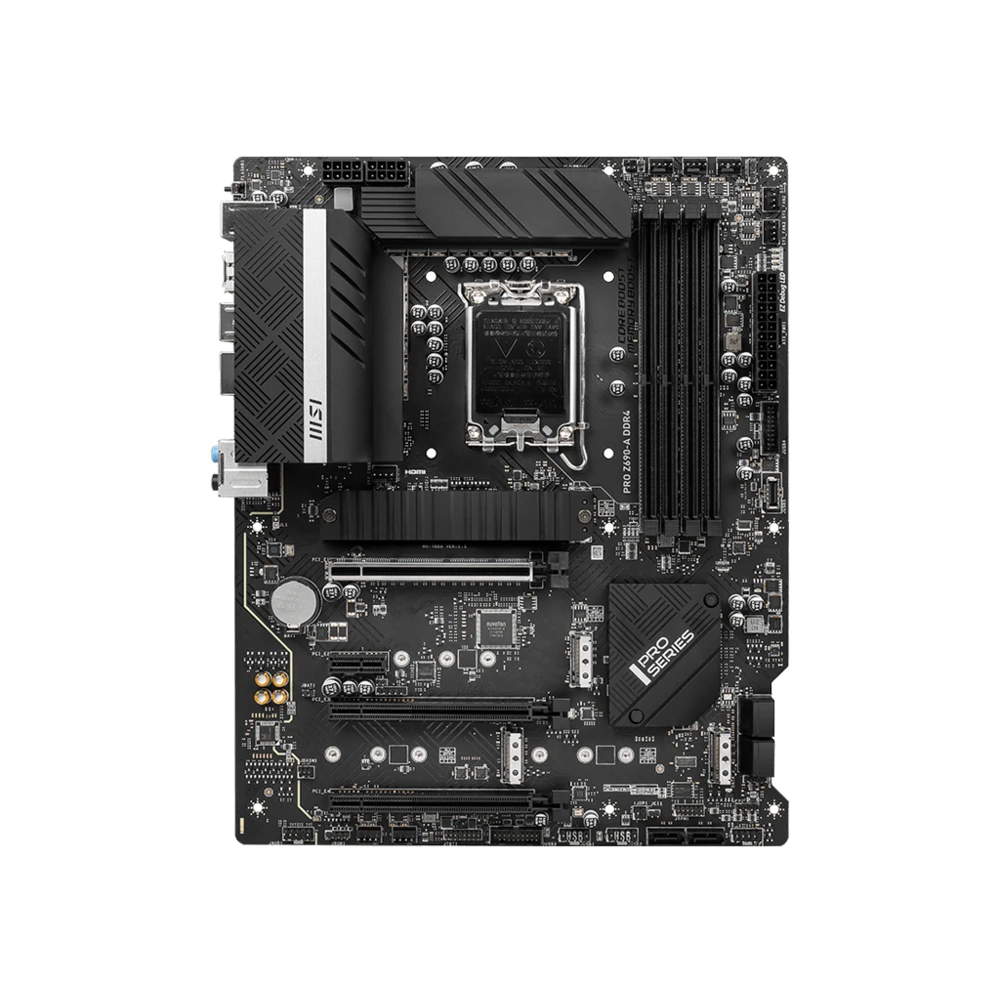MSI PRO Z690-A DDR4. Processor manufacturer: Intel, Processor socket: LGA 1700, Compatible processor series: Intel® Core™ i3, Intel® Core™ i5, Intel® Core™ i7, Intel® Core™ i9. Supported memory types: DDR4-SDRAM, Maximum internal memory: 128 GB, Memory slots type: DIMM. Supported storage drive interfaces: M.2, SATA, Supported storage drive types: HDD & SSD, RAID levels: 0, 1, 5, 10. Parallel processing technology support: Crossfire. Ethernet interface type: 2.5 Gigabit Ethernet, LAN controller: Intel I225-V