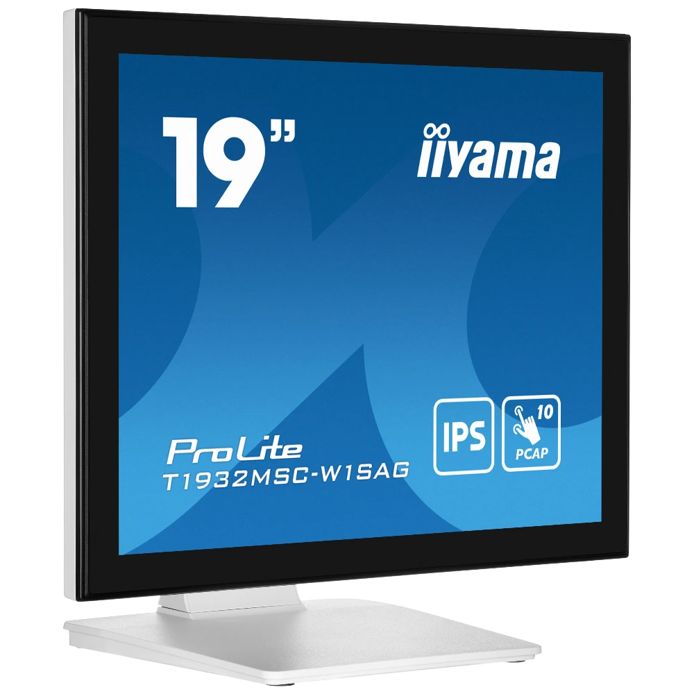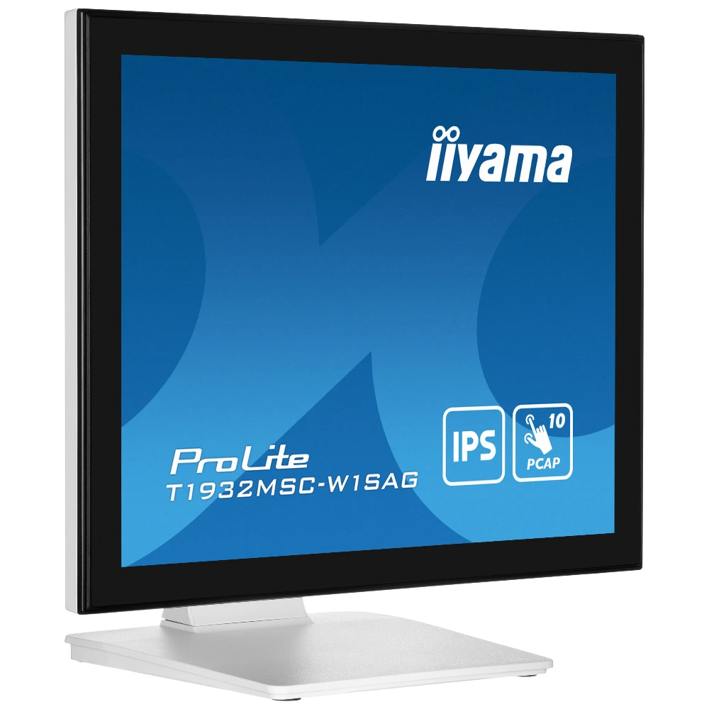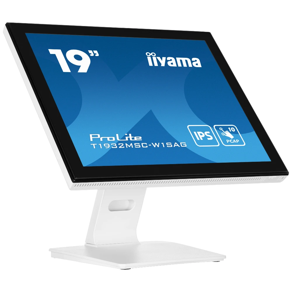 iiyama ProLite T1932MSC-W1SAG. Display diagonal: 48.3 cm (19"), Display resolution: 1280 x 1024 pixels, HD type: Full HD, Display technology: LED, Display surface: Matt, Response time: 14 ms, Native aspect ratio: 5:4, Viewing angle, horizontal: 178?, Viewing angle, vertical: 178?. Built-in speaker(s). VESA mounting. Product colour: White