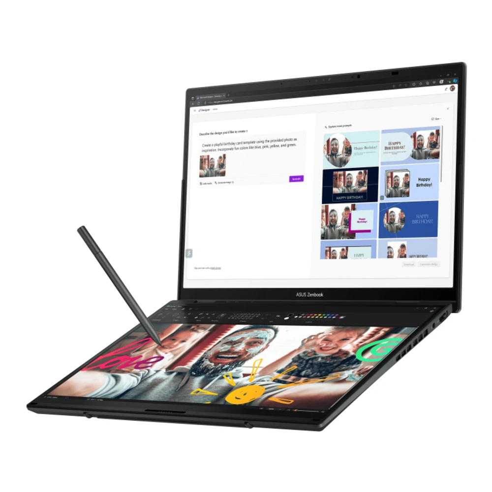 ASUS Zenbook DUO is a revolutionary dual-screen laptop, with two full-size OLED touchscreens1, detachable full-size keyboard and built-in kickstand, — expertly combining multitasking versatility with superb mobility. With dual 14-inch 3K OLED 120 Hz displays, you can instantly expand your workspace to up to 19.8 inches. Outstanding performance is assured with up to an AI-powered Intel® Core™ Ultra 9 processor and 32 GB LPDDR5x memory, plus up to a 2 TB PCIe® 4.0 SSD. Paired with dedicated smart software, intuitive gesture control and an enhanced-lifespan 75 Wh battery, the easy-to-use Zenbook DUO maximizes productivity, with zero fuss. Come on — Let’s DUO it.