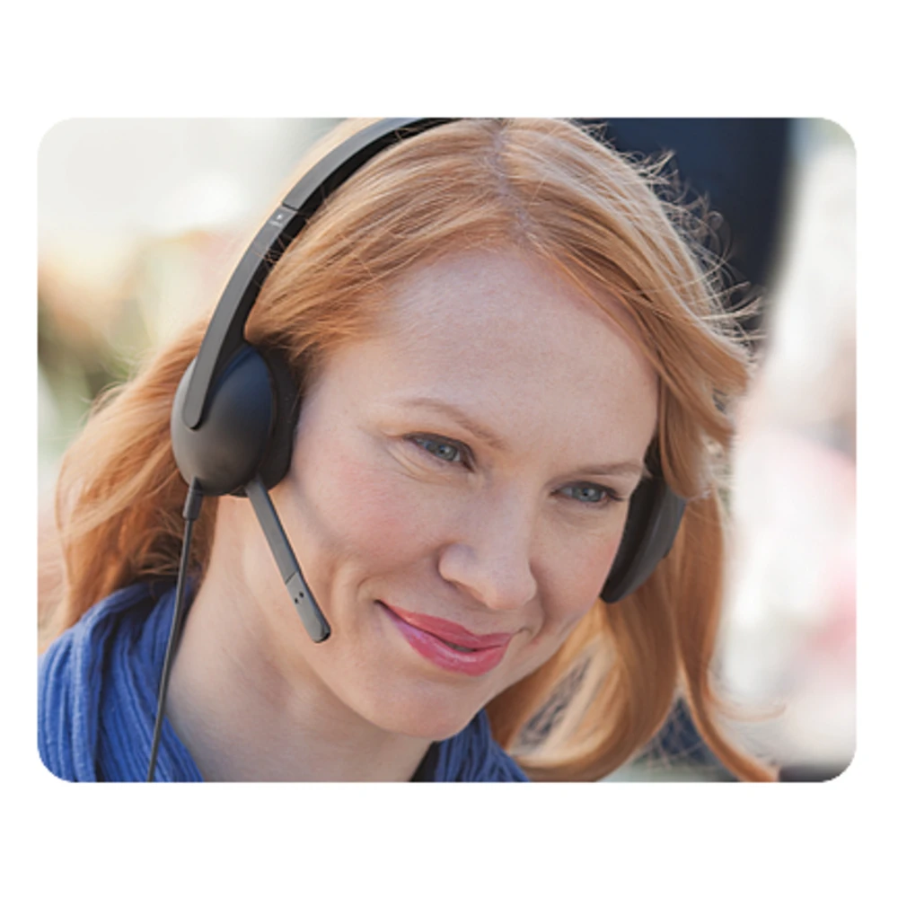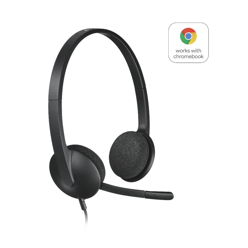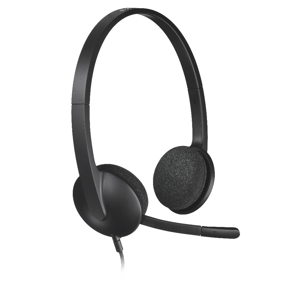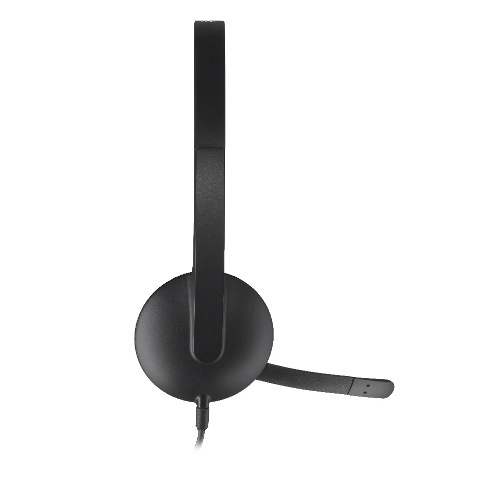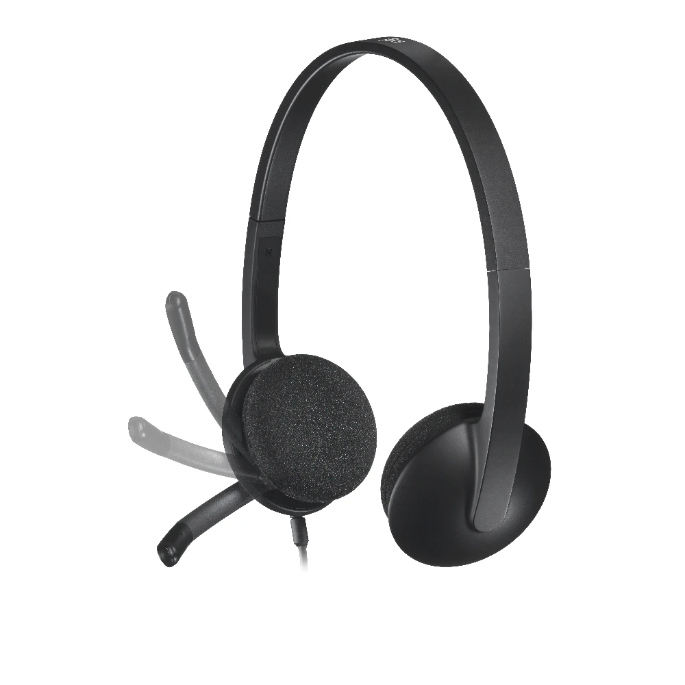 H340 USB Computer Headset Logitech H340 USB Computer Headset. Product type: Headset. Connectivity technology: Wired. Recommended usage: Office/Call center. Headphone frequency: 20 - 20000 Hz. Cable length: 1.8 m. Weight: 100 g. Product colour: Black The perfect everyday headset with a simple plug-and-play USB connection. A noise-canceling microphone reduces background noise and delivers clear digital audio for VOIP and Skype calls. The perfect everyday headset with a simple plug-and-play USB connection. Without the need to install software, you’re ready to go. A noise-canceling microphone reduces background noise and delivers clear digital audio for VOIP and Skype calls. Discreet and right-sided boom can be tucked inside the headband and out of the way when you’re not using it. Lightweight and adjustable headband with swivel-mounted foam ear cushions feel comfortable even after long hours of use.