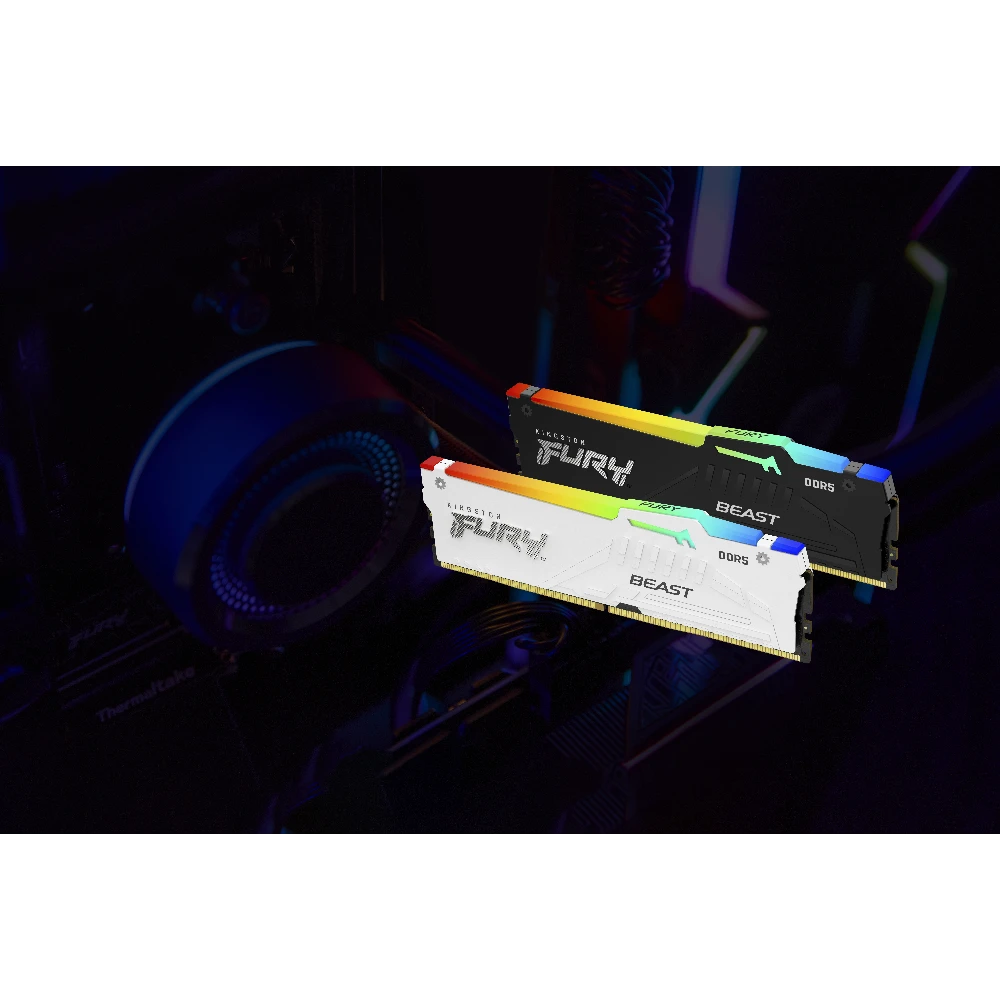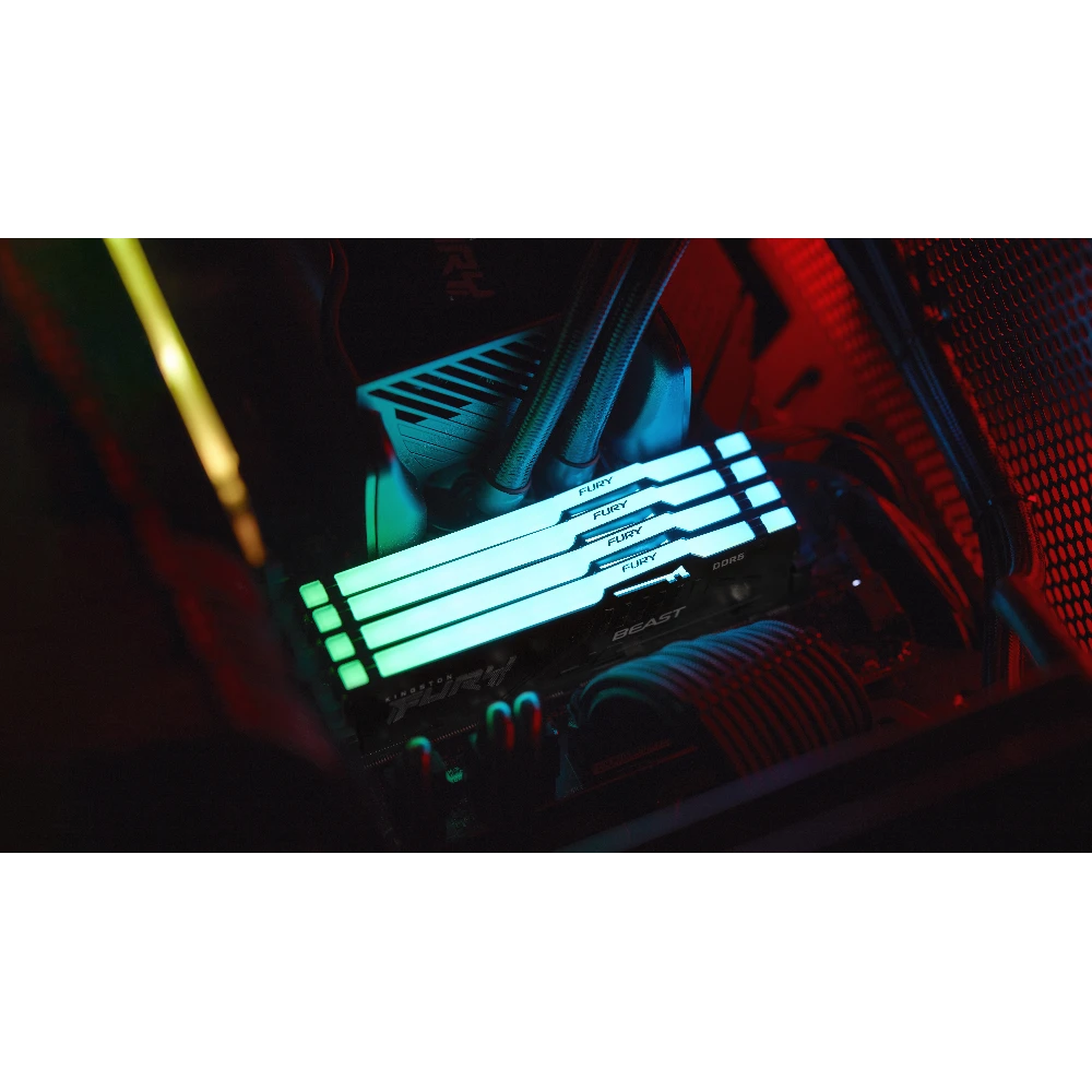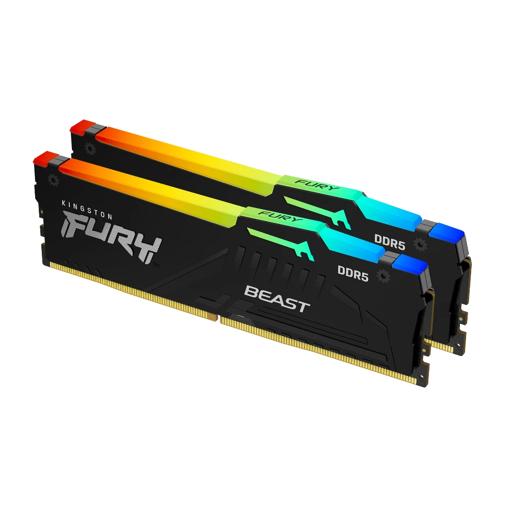 Kingston FURY™ Beast DDR5 RGB** lets you overclock in style on next-gen gaming platforms with cutting-edge technology. Experience the superior speed advancements of DDR5 with double the banks and double the burst length.