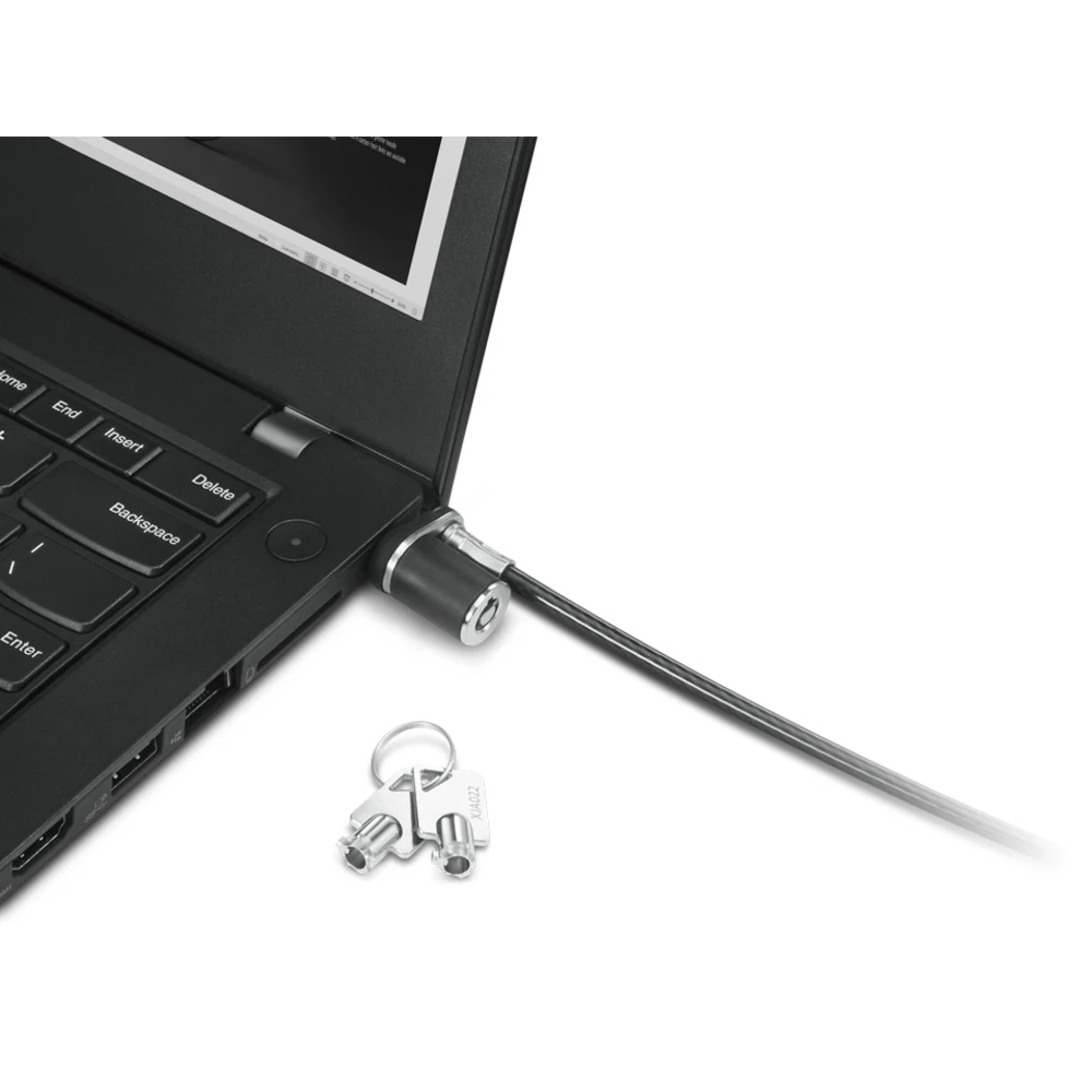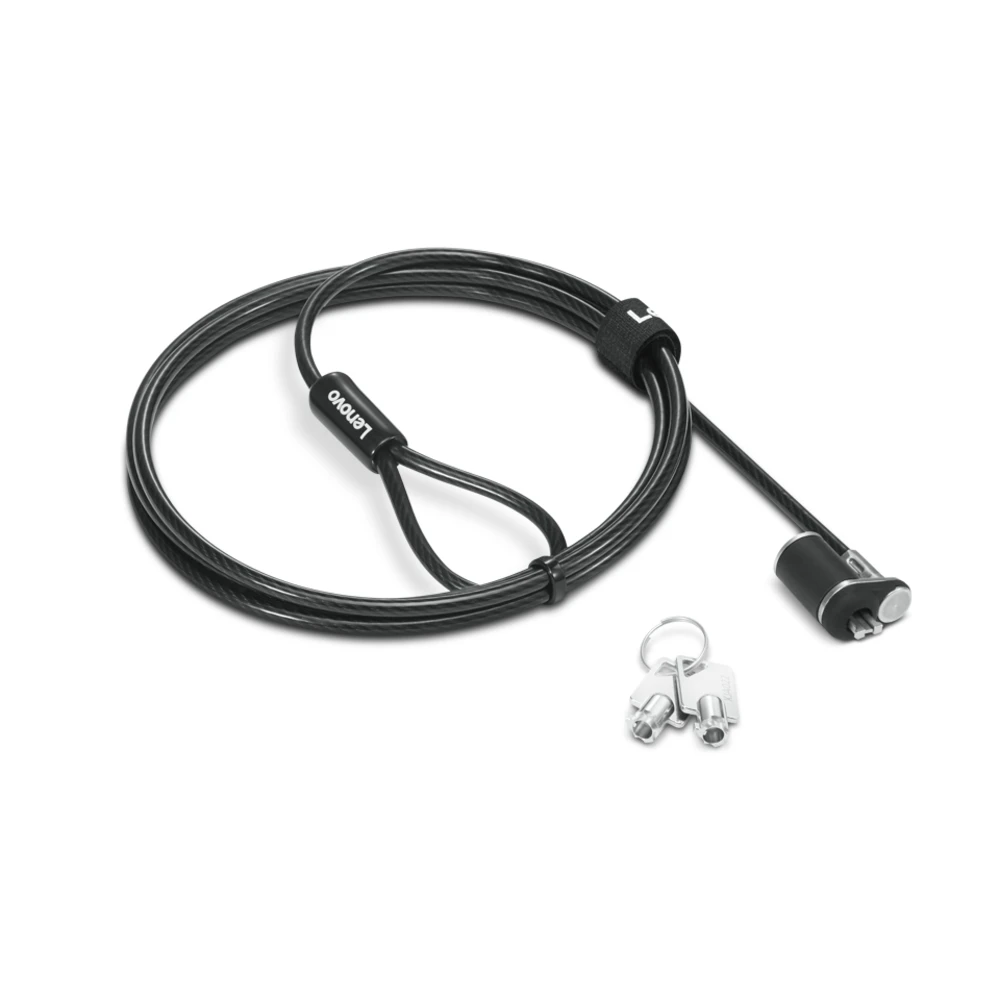 NanoSaver Essential Cable Lock from Lenovo Lenovo 4XE1F30276. Product colour: Black, Best uses: Laptop, Lock type: Key. Cable length: 1.5 m, Weight: 180 g. Package width: 250 mm, Package depth: 170 mm, Package height: 30 mm The Lenovo Security Cable Lock allows customers to manage physical security access within the enterprise, offices, schools, libraries, or in other public spaces. Cable locks help reduce theft, and increase physical asset security protection for laptops, docking stations, desktops and flat panel monitors.