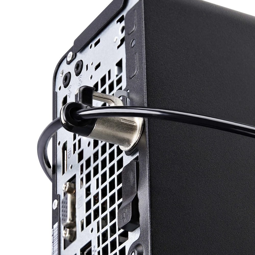StarTech.com Laptop/Desktop & Peripheral Lock Kit, Theft-Deterring Security Lock, K-Slot, 9.8ft (3m) Steel Cable, 3x Devices StarTech.com Laptop/Desktop & Peripheral Lock Kit, Theft-Deterring Security Lock, K-Slot, 9.8ft (3m) Steel Cable, 3x Devices, User-Resettable 4-Digit Lock - TAA. Product colour: Black, Silver, Best uses: Laptop, Lock type: Combination lock. Cable length: 3 m, Width: 59 mm, Depth: 35 mm. Quantity per pack: 1 pc(s), Package width: 200 mm, Package depth: 205 mm. Master (outer) case width: 375 mm, Master (outer) case length: 316 mm, Master (outer) case height: 290 mm - Workstation lock kit secures laptop/desktop and peripherals with a security cable; K-slot compatible - Includes three permanent locking heads/one removable head and spacers for improved fitting; User-resettable 4-digit combination locks - 9.8ft (3m) steel cable for convenient cable routing without rearranging setups - Expandable by combining with accessories (sold separately) - 0.2in (4.8mm) thick braided steel cable with zinc-alloy locking heads - Ideal for public spaces/labs/tradeshows Deter theft of laptops, desktop computers, docking stations, or other K-slot compatible peripherals using this security cable lock