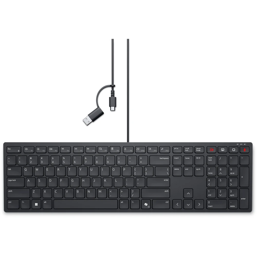 DELL KB525C. Keyboard form factor: Full-size (100%), Connectivity technology: Wired, Device interface: USB, Keyboard key switch: Plunger key switch, Keyboard layout: QWERTY, Recommended usage: Office. Product colour: Black