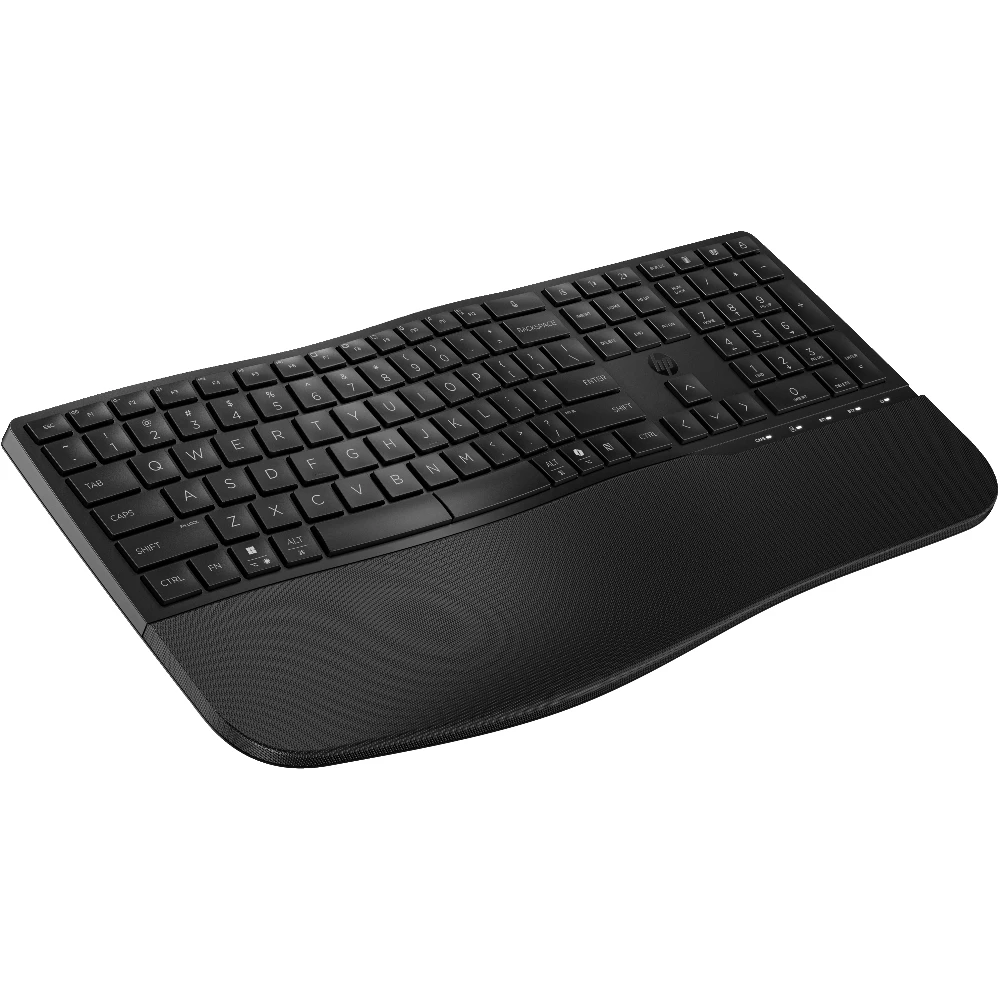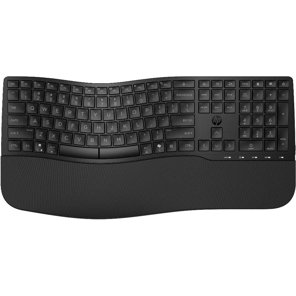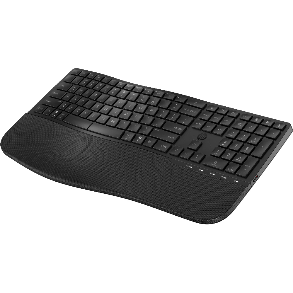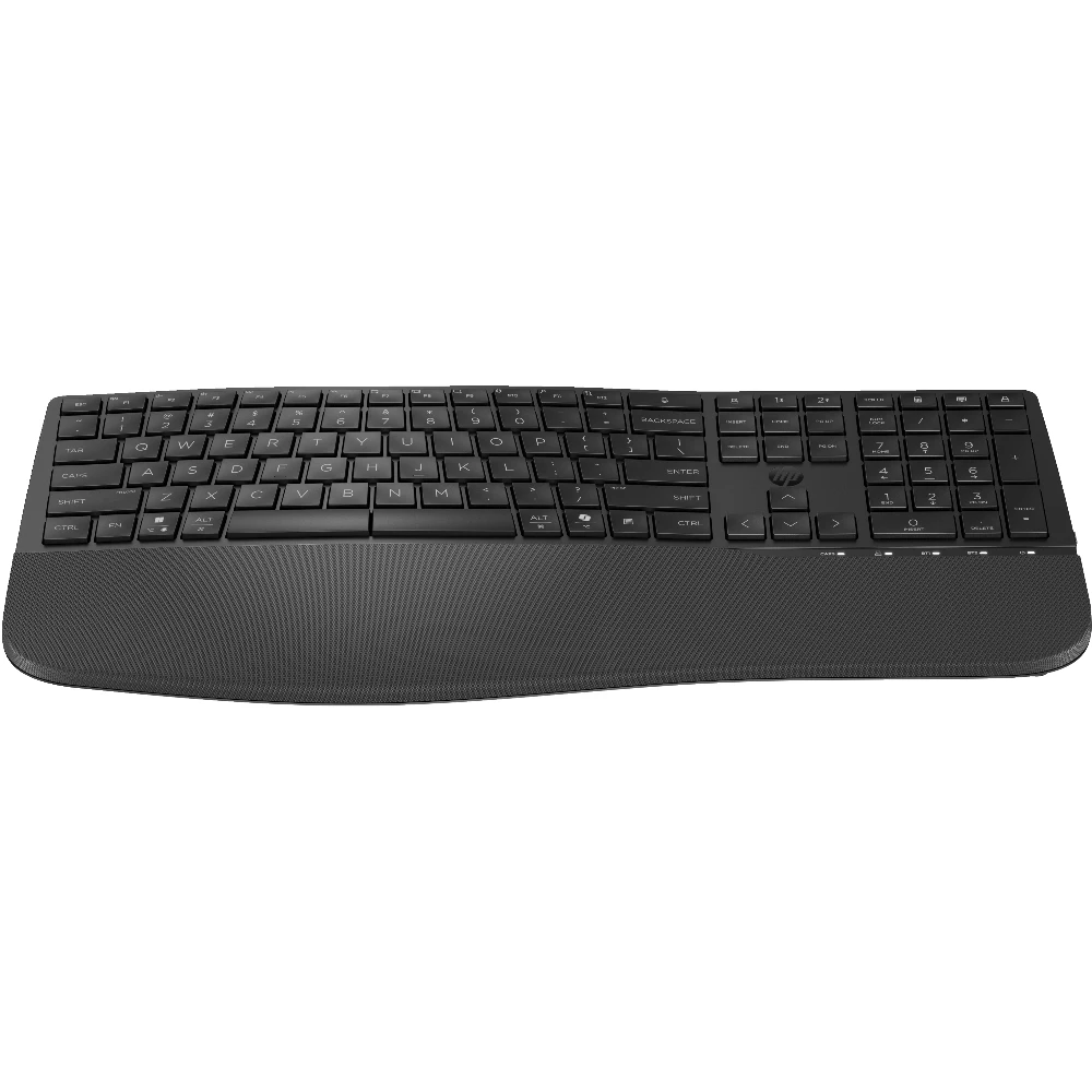 HP 685 Comfort Dual-Mode Keyboard. Keyboard form factor: Full-size (100%), Connectivity technology: Wireless, Device interface: RF Wireless + Bluetooth, Keyboard key switch: Membrane. Wrist rest. Recommended usage: Office. Product colour: Black