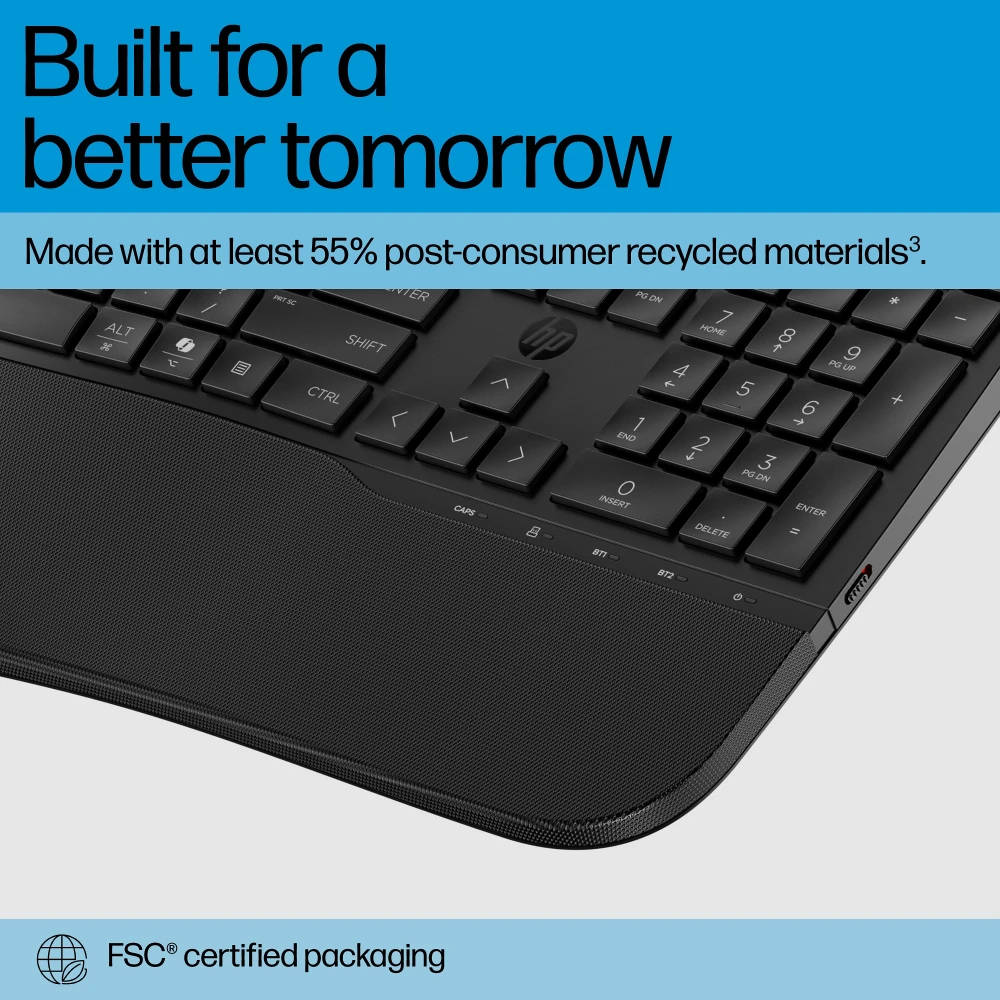 Need a keyboard that fits to your business? The HP 685 Comfort Dual-Mode Keyboard is just your type. With adjustable typing angles, programmable keys[1], and secure connectivity, this keyboard boasts all the comfort, customization, and compatibility your workforce needs.