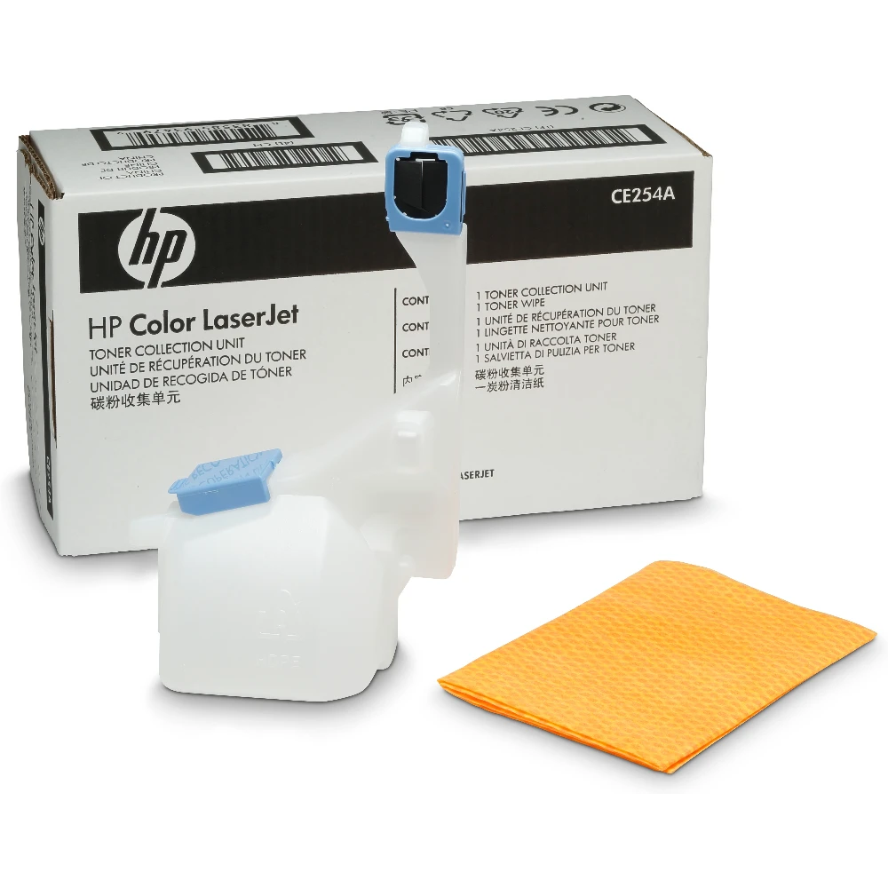 Color LaserJet CE254A Toner Collection Unit HP Color LaserJet CE254A Toner Collection Unit. Page yield: 36000 pages, Print technology: Laser, Printing colours: Black, Cyan, Magenta, Yellow. Width: 296 mm, Depth: 164 mm, Height: 101 mm. Package dimensions (WxDxH): 296 x 164 x 101 mm, Quantity per pack: 1 pc(s), Package width: 296 mm. Pallet gross weight: 129 g, Master (outer) cases per pallet (intermodal container 20ft): 216 pc(s), Products per pallet (EU): 216 pc(s)