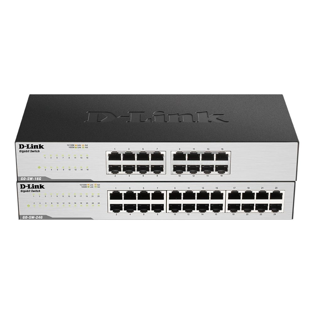 The GO-SW-16G/24G 16/24-Port Gigabit Easy Desktop Switch is an economical, plug-and-play networking switch solution for SOHO and small and medium businesses wanting to benefit from the increased bandwidth of Gigabit Ethernet. It provides 16 or 24 10/100/1000 Mbps ports that enable you to easily expand your network and provide a quick way to upgrade your network to fast connectivity.