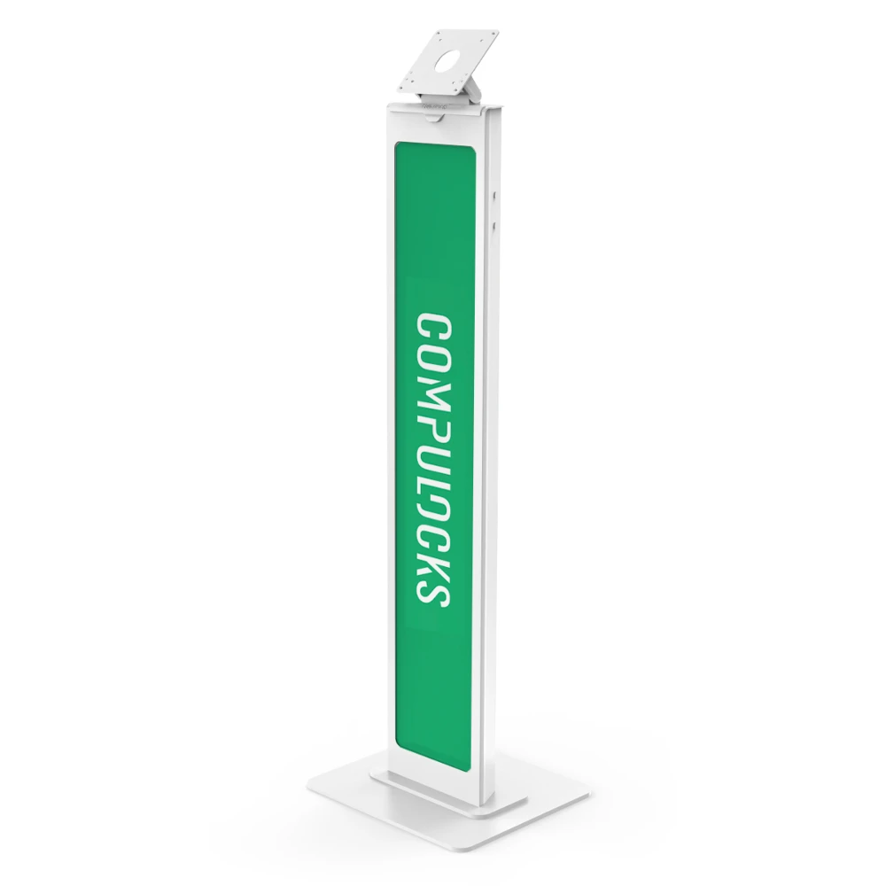 Maclocks Brand-able Floor Stand is an enclosure stand with space allowing you to put a custom message or branded panel making it a great display solution for stand-alone environments.