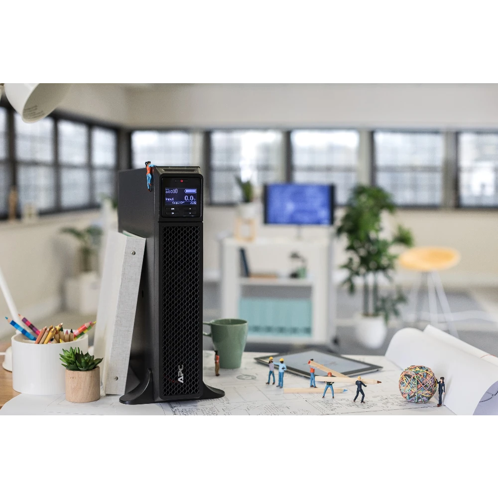 Smart-UPS On-Line, 3kVA, Tower, 208V/230V, 6x C13+2x C19 IEC outlets, SmartSlot, Extended runtime, W/O rail kit APC Smart-UPS On-Line, 3kVA, Tower, 208V/230V, 6x C13+2x C19 IEC outlets, SmartSlot, Extended runtime, W/O rail kit. UPS topology: Double-conversion (Online), Output power capacity: 3 kVA, Output power: 2700 W. AC outlet types: C13 coupler, C19 coupler, Power plug: C20 coupler, AC outlets quantity: 8 AC outlet(s). Battery technology: Sealed Lead Acid (VRLA), Battery capacity: 505 VAh, Typical backup time at full load: 4 min. Form factor: Tower, Product colour: Black, Cable length: 2.44 m. Width: 85 mm, Depth: 635 mm, Height: 432 mm This APC Smart-UPS is designed for IT professionals or network administrators to maintain business uptime and continuity. This 3kVA on-line tower UPS provides pure sine wave power and extended runtime to support critical electronics during power disruptions. It comes with BS1363A British, IEC 320 C20, and Schuko CEE 7/EU1-16P inputs, 6x IEC 320 C13 and 2x IEC 320 C19 outlets. It has a SmartSlot for optional Network Management Card that enables graceful shutdown of physical servers, virtual machines & HCI Clusters via PowerChute Network Shutdown. This On-Line UPS features Unity Power Factor for best-in-class power density. With 10 outlets and a compatibility with external battery packs, this server UPS provides uninterrupted and scalable battery power to connected electronics. The UPS can connect to EcoStruxure IT or third-party centralized management platforms. Use the intuitive LCD interface and PowerChute Business software to configure settings and monitor usage. The UPS has a 3-year warranty, and the built-in lead-acid battery has a 2-year warranty. The UPS is compatible with SRTRK4 (4-post) and SRTRK3 (2-post) rail kits sold separately. A built-in energy meter measures energy use and displays UPS efficiency in various modes of operation for easy energy tracking. Two switchable outlet groups are included for individual load management. Predictive battery management provides an estimated date of when battery replacement is recommended. Package Contains UPS, CD with software, Documentation CD, Installation guide, Removable support feet, Smart UPS signalling RS-232 cable, USB cable.
