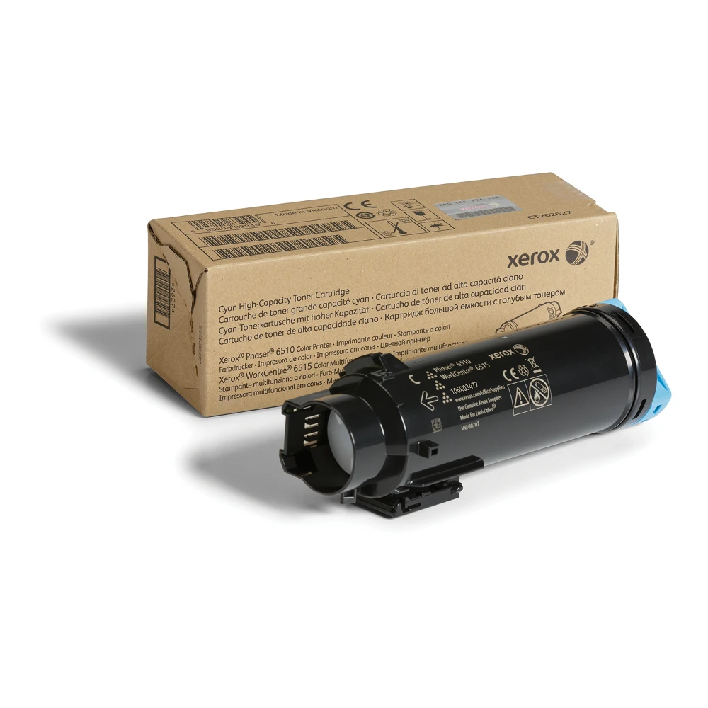 Xerox Genuine Phaser® 6510, WorkCentre® 6515 Cyan High capacity Toner Cartridge (2400 Pages) - 106R03477 is specially formulated and tested to provide the best image quality and most reliable printing you can count on page after page. Xerox Genuine Supplies and Xerox equipment are made for each other. Accept no imitations. Compatible toners may risk breakdown of Xerox printers and result in poor print quality and weak colours. With over 75 years' experience, Genuine Xerox Supplies are something you can rely on.