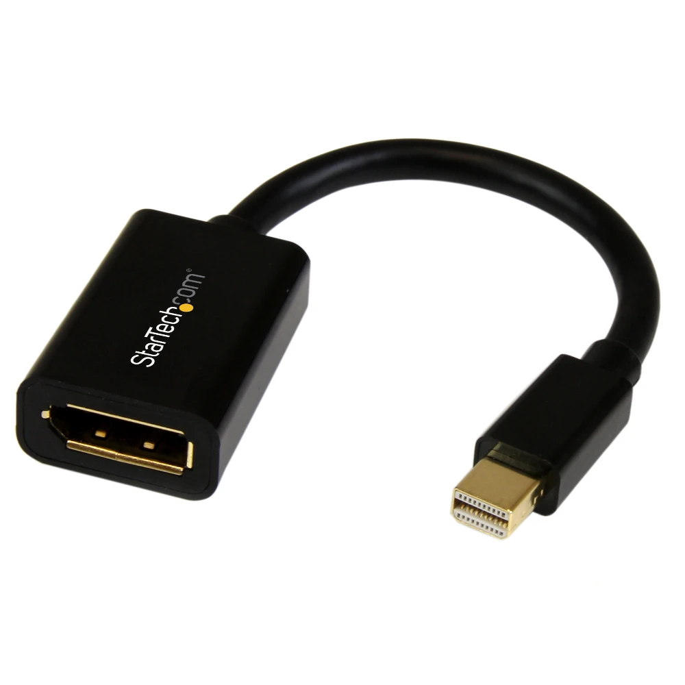 StarTech.com Mini DisplayPort to DisplayPort Adapter - 4K x 2K UHD Video - Mini DP to DP Converter - Mini DisplayPort to DisplayPort 1.2 Adapter - mDP PC/Computer to DP Monitor/Display (MDP2DPMF6IN) StarTech.com Mini DisplayPort to DisplayPort Adapter - 4K x 2K UHD Video - Mini DP to DP Converter - Mini DisplayPort to DisplayPort 1.2 Adapter - mDP PC/Computer to DP Monitor/Display. Cable length: 0.1524 m, Connector 1: Mini DisplayPort, Connector 2: DisplayPort. Cable diameter: 5 mm, Weight: 19 g, Quantity per pack: 1 pc(s). Master (outer) case width: 375 mm, Master (outer) case length: 414 mm, Master (outer) case height: 270 mm - Mini DisplayPort to DisplayPort adapter supports 4K x 2K video (3840x2400p 60Hz); mDP 1.2/21.6 Gbps/HBR2/8Ch Audio/MST/GTC/3D Stereo (2560x1600p 120Hz) | 6" (15cm) attached cable - mDP to DP adapter has durable ABS connectors w/ flexible PVC strain relief | Male/female - Mini DP to DP Converter works w/ laptop (w/ Thunderbolt 2/Mini-DP port)/workstations with FirePro™ W9100/8100 / NVS 810/510 graphic card; UHD/4K monitor/projector/display; Apple MacBook Pro/Air | Microsoft Surface Pro Connect your DisplayPort® monitor to a standard Mini DisplayPort source