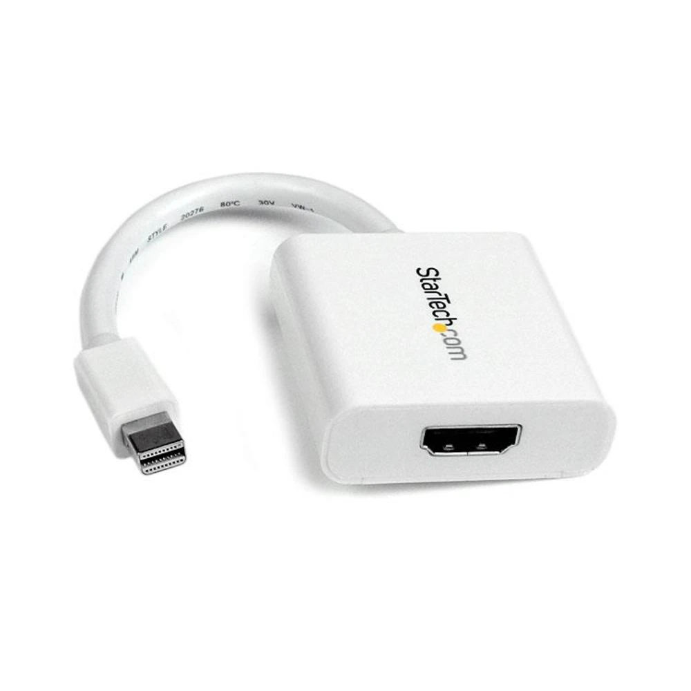 StarTech.com Mini DisplayPort to HDMI Adapter - mDP to HDMI Video Converter - 1080p - Mini DP or Thunderbolt 1/2 Mac/PC to HDMI Monitor/Display/TV - Passive mDP 1.2 to HDMI Dongle - White (MDP2HDW) StarTech.com Mini DisplayPort to HDMI Adapter - mDP to HDMI Video Converter - 1080p - Mini DP or Thunderbolt 1/2 Mac/PC to HDMI Monitor/Display/TV - Passive mDP 1.2 to HDMI Dongle - White. Cable length: 0.12 m, Connector 1: Mini-DisplayPort, Connector 2: HDMI. Weight: 24 g, Width: 40 mm, Depth: 170 mm. Quantity per pack: 1 pc(s), Package width: 160 mm, Package depth: 240 mm. Master (outer) case width: 270 mm, Master (outer) case length: 455 mm, Master (outer) case height: 355 mm. Material: Plastic - White Mini DisplayPort to HDMI adapter supports 1920x1200 or 1080p 60Hz | mDP 1.2 to HDMI | 7.1 Audio/HDCP 1.4/DPCP - Passive Mini DP to HDMI adapter dongle supports Mini DisplayPort equipped PC or Mac incl Thunderbolt 1/2 MacBook/Air/Mini | Microsoft Surface Pro 1-6 | Desktop computers/laptops/Intel NUC/docks - mDP to HDMI display adapter | Connect to HDMI monitor/TV/projector | 5" cable - Mini DisplayPort to HDMI converter (male to female) tested with HDMI cables up to 50' - OS independent Connect an HDMI®-capable display to a Mini-DisplayPort®-equipped PC or Mac® computer