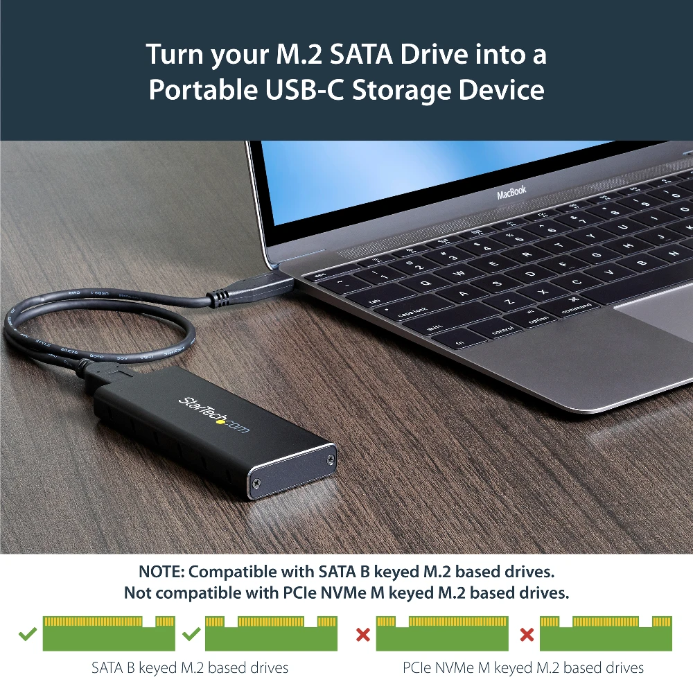 StarTech.com M.2 SSD Enclosure for M.2 SATA SSDs - USB 3.1 (10Gbps) with USB-C Cable - External Enclosure for USB-C Host - Aluminum