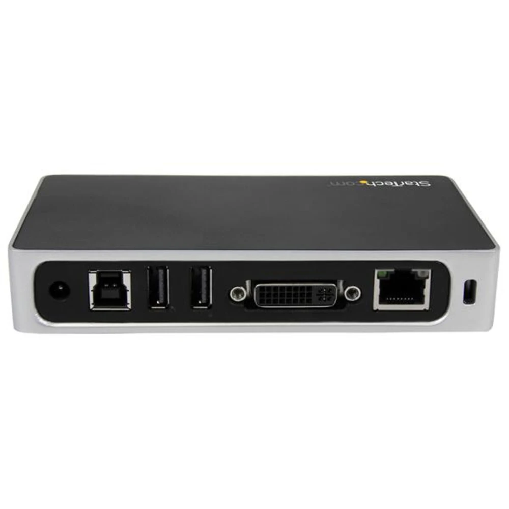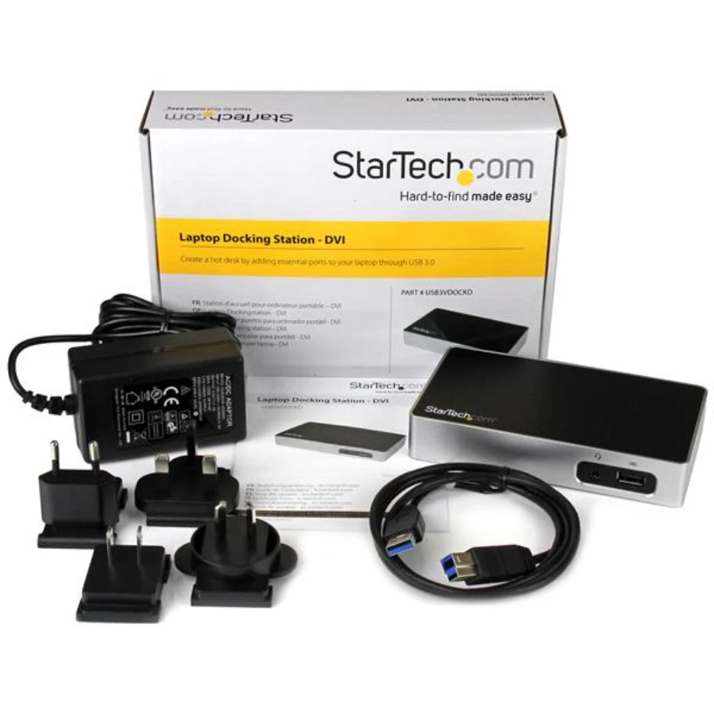 StarTech.com USB Docking Station with DVI, Compatible with Windows / macOS, Supports a Single DVI Display (USB3VDOCKD by StarTech.com StarTech.com DVI Docking Station for Laptops - USB 3.0. Connectivity technology: Wired, Host interface: USB 3.2 Gen 1 (3.1 Gen 1) Type-B, Headphone connectivity: 3.5 mm. Ethernet LAN data rates: 10,100,1000 Mbit/s, Networking standards: IEEE 802.3, IEEE 802.3ab, IEEE 802.3u. Product colour: Black, Silver, Maximum digital resolution: 2048 x 1152 pixels, Housing material: Plastic. AC input voltage: 100-240 V, Input current: 0.8 A, Output voltage: 5 V. Windows operating systems supported: Windows 10, Windows 10 Education, Windows 10 Education x64, Windows 10 Enterprise, Windows 10..., Mac operating systems supported: Mac OS X 10.10 Yosemite, Mac OS X 10.11 El Capitan, Mac OS X 10.12 Sierra, Mac OS X 10.13 High..., Other operating systems supported: ChromeOS Set up a permanent or hoteling (hot desking) workstation where fewer peripheral and device ports are needed, and in an area where desk space is limited